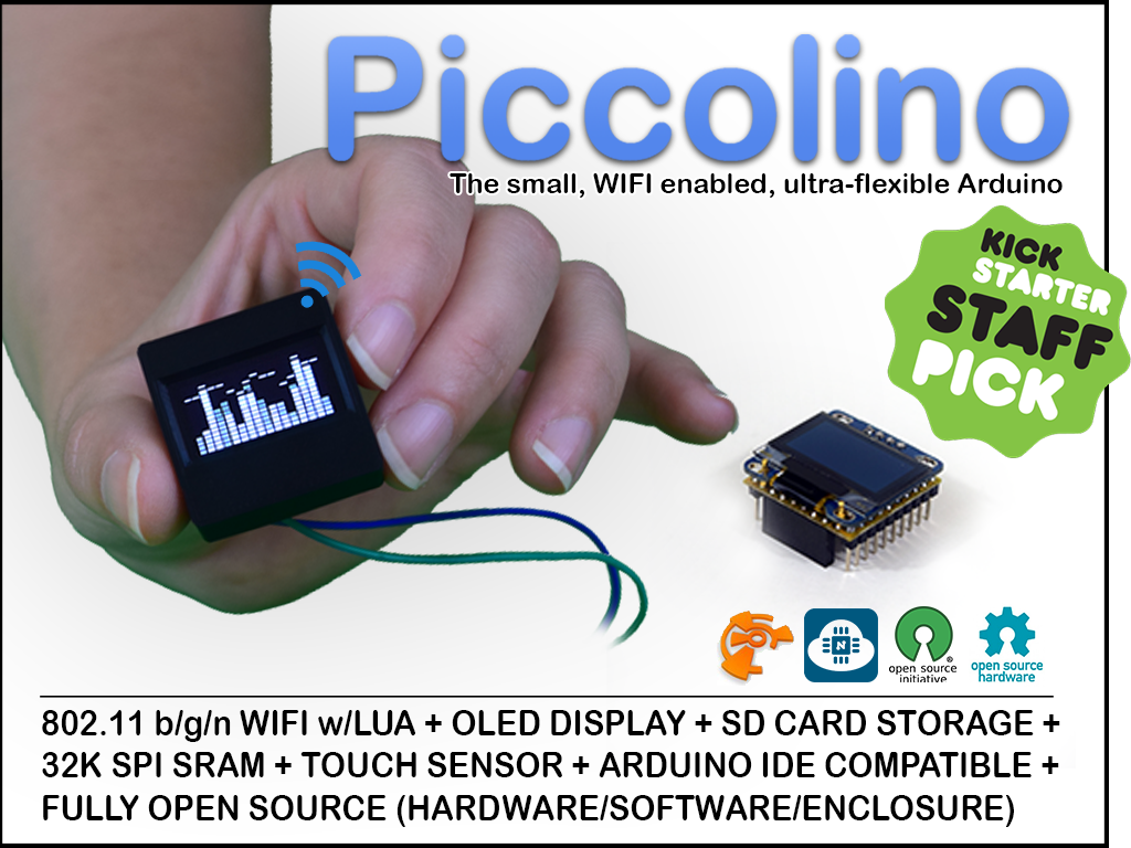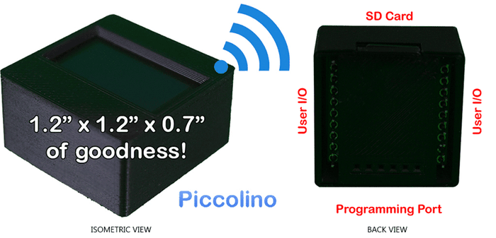 Autorem projektu jest Alex Sardo, założyciel firmy World Class Technologies projektującej innowacyjne rozwiązania w zakresie oprogramowania i sprzętu elektronicznego do różnych zastosowań. Powołując się na własne doświadczenia Sardo wielokrotnie zauważał potrzebę łatwego implementowania we własnych projektach wyświetlaczy, obsługi bezprzewodowej oraz obsługi zewnętrznych kart pamięci. Za każdym razem było to pracochłonne i generowało dodatkowe koszty. Stąd pojawił się pomysł stworzenia miniaturowego modułu, który byłby łatwy w dołączaniu do dowolnego projektu. Tak powstało Piccolino. Piccolino (po włosku: niewielki) to miniaturowy, nisko-kosztowy moduł programowalny z wbudowanym ekranem OLED oraz obsługą WiFi i obsługą kart SD. Sercem modułu jest znany miłośnikom Arduino mikrokontroler AVR ATmega328p Urządzenie jest programowane z użyciem popularnych narzędzi, takich jak Arduino IDE o ESPlorer IDE. Wewnątrz urządzenia wbudowany jest popularny moduł WiFI ESP8266 LUA.