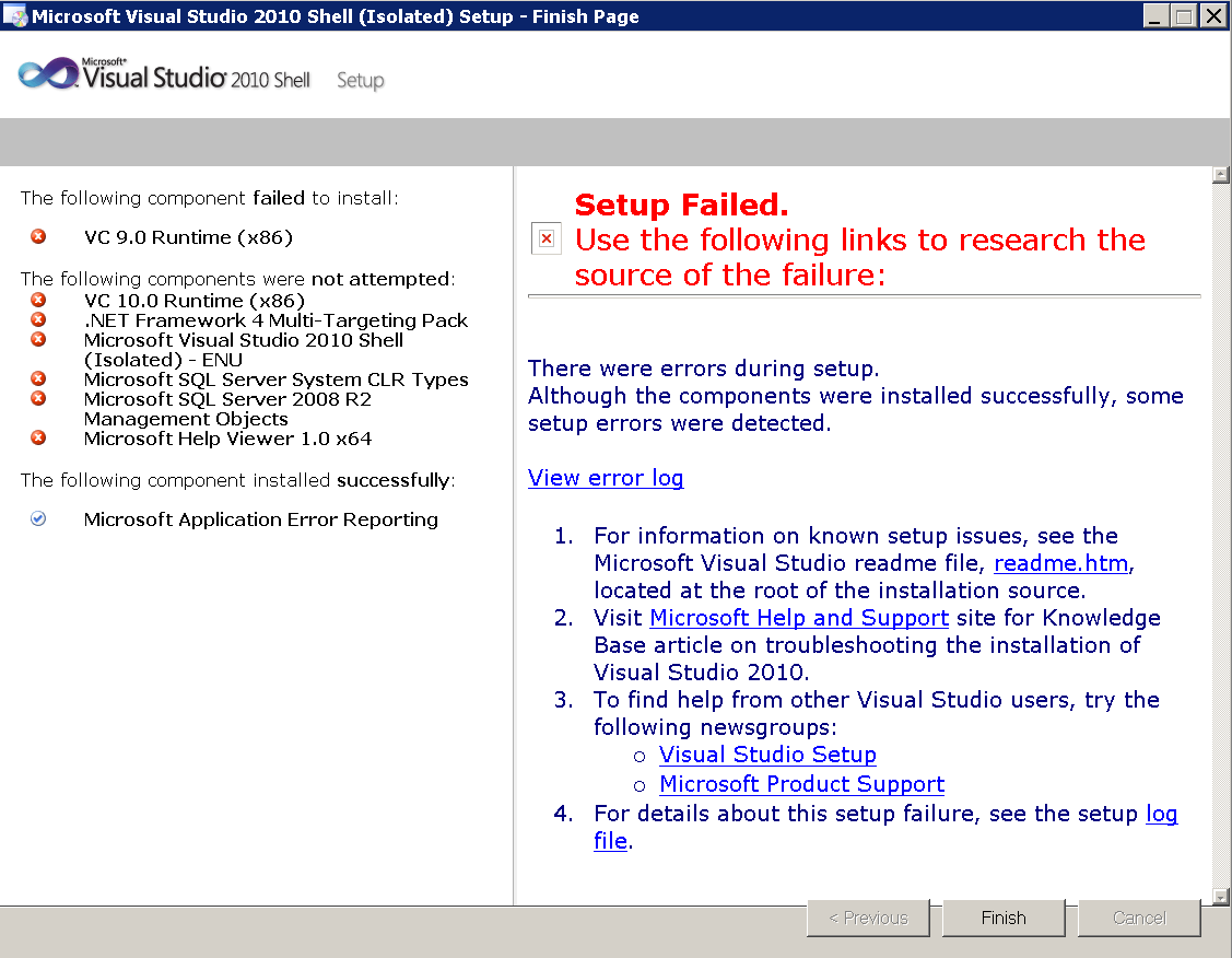 Czy ostatni komunikat o błędzie jest powiązany z pierwszym (VC Runtime, Microsoft Visual Studio 2010 Shell,...)?