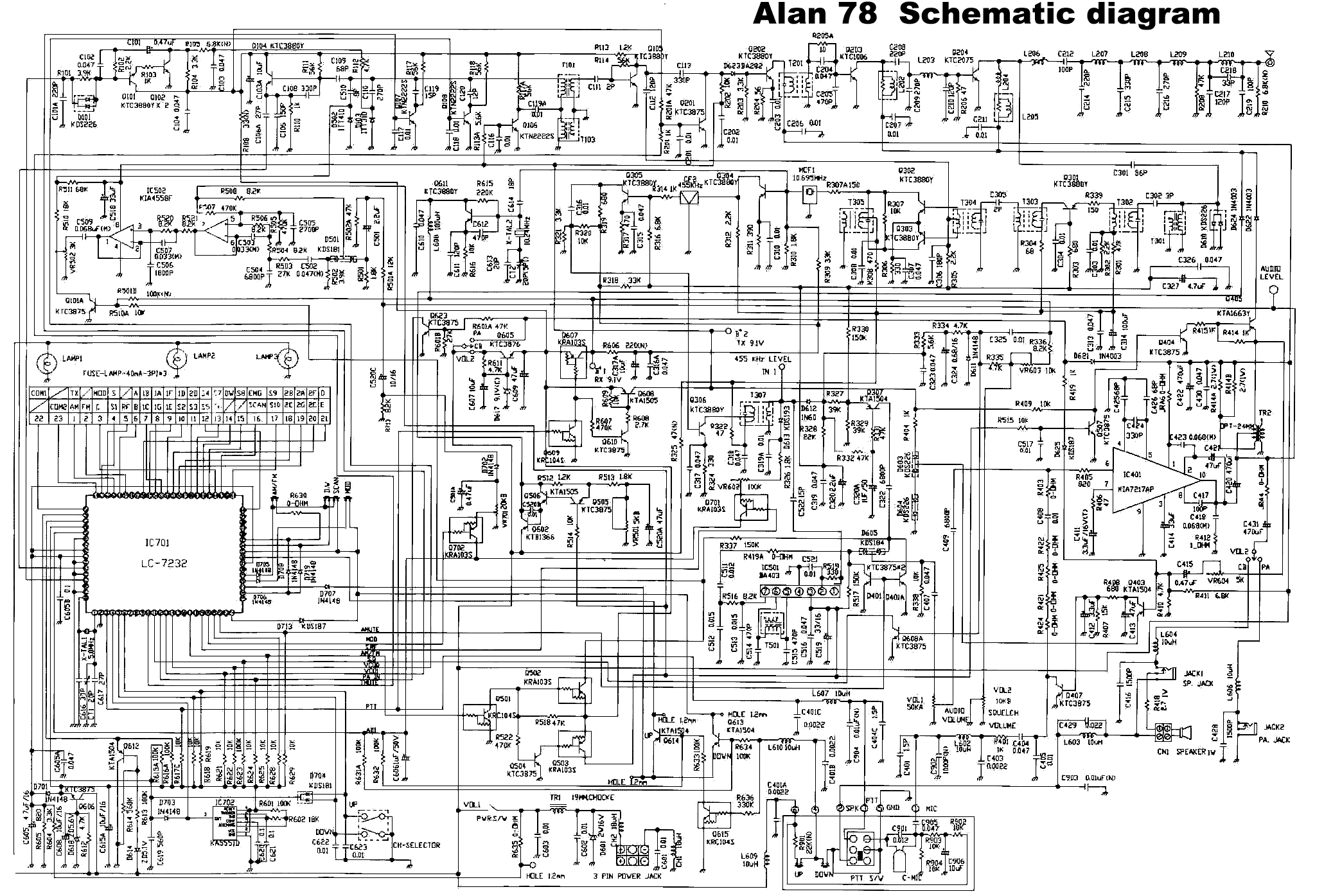 Przy naciskaniu PTT na wyświetlaczu pojawia się TX i wskaźnik wysterowania wychyla się na maximum. Po otwarciu uporządkowałem wcześniejszą "niefachową" naprawę (niedolutowania itd.) ciągle brakuje 2 elementów. Jeden z nich to (na schemacie) C203, a drugiego niema na schemacie.