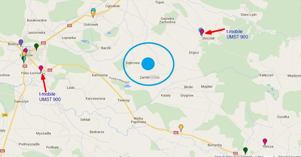 Witam. Jak w Temacie. Proszę o poradę co do wyboru modemu. Średnio mam rozeznanie w tym temacie. Prosił bym w poradach o konkretne modele. Otóż najlepszy zasięg u mnie ma t-mobile i z niego korzystam. Do dwóch najbliższych BTSów mam 9km i do drugiego około 5km. Zazwyczaj korzystam z Lumi 520 której używam jako hotspot przez wi-fi do laptopa i na pełnym zasięgu HSPA+ który Praktycznie zawsze się utrzymuje na takim poziomie otrzymuje Prędkości pobierania 6-8 Mbit/s i 1.5-3 Mbit/s wysyłania. Co w zupełności mi wystarcza do przeglądania internetu czy obejrzenia filmu. Na Screenie oznaczyłem BTS-y i na Niebiesko mniej więcej moja lokalizację. Także Proszę o Porady co do Modemu jaki nabyć za sensowne pieniądze żeby działał w HSPA+. Pozdrawiam