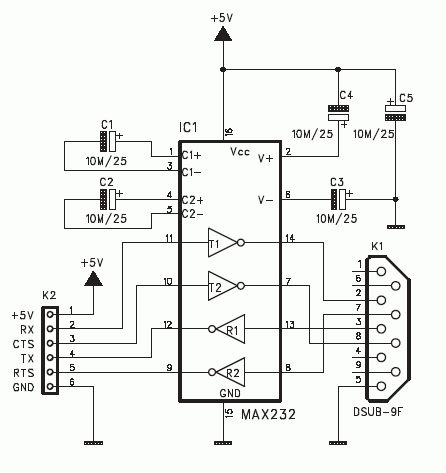 MAX232 jest uniwersalnym interfejsem między portem szeregowym standardu RS232, a dowolnym urządzeniem które sterowane jest napięciami standardu CMOS/TTL przeznaczonymi do komunikacji z układami, mikrokontrolerami.