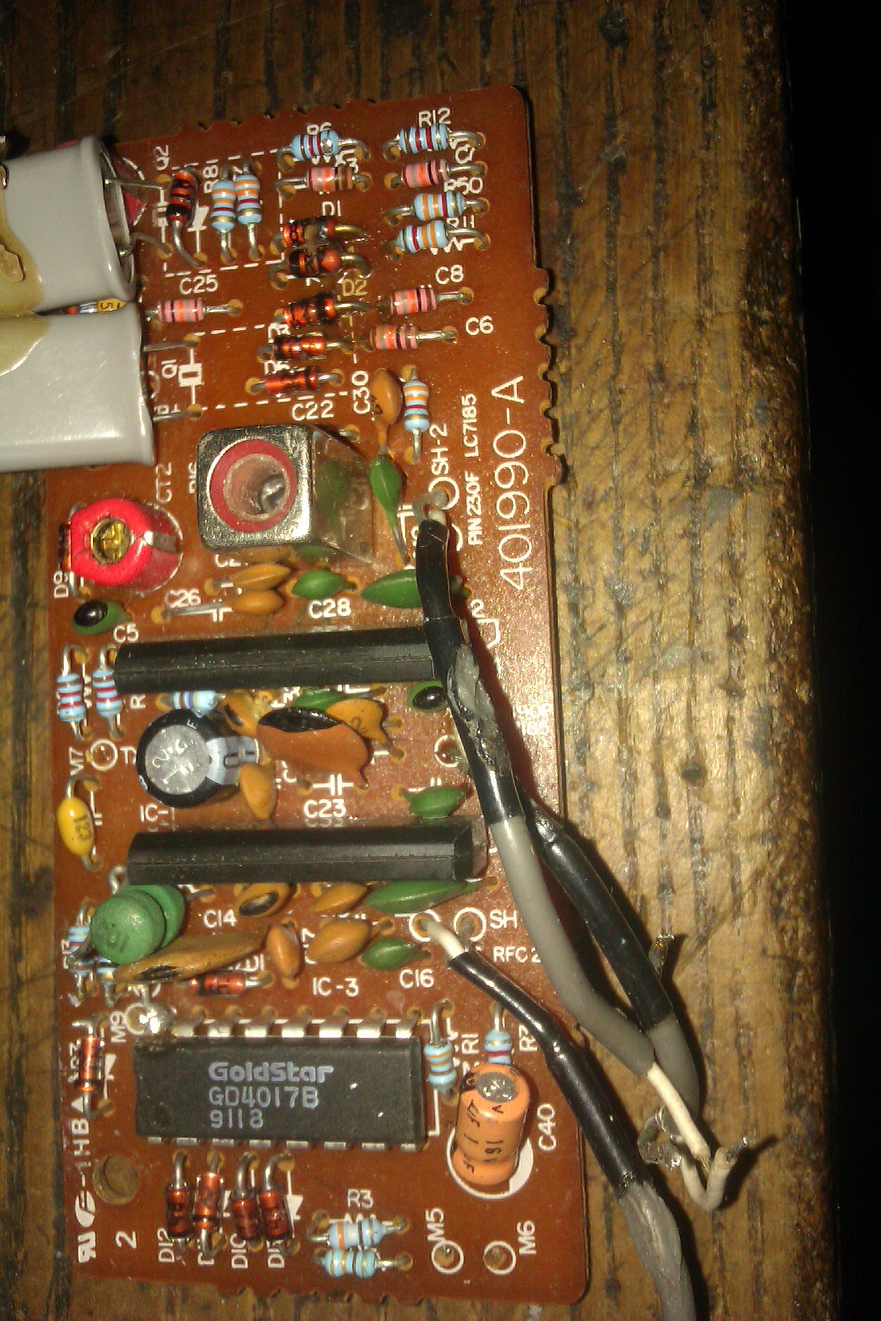 Po rozebraniu zauważyłem coś takiego jak na zdjęciu poniżej. Czyli coś spalonego, chyba to rezystor lub dioda. To jest na płytce która jest dodatkowa w radiu. To nie jest na głównej płytce. Czy może macie jakich schemat który obejmuje tą płytkę? A może wiecie co to się spaliło?