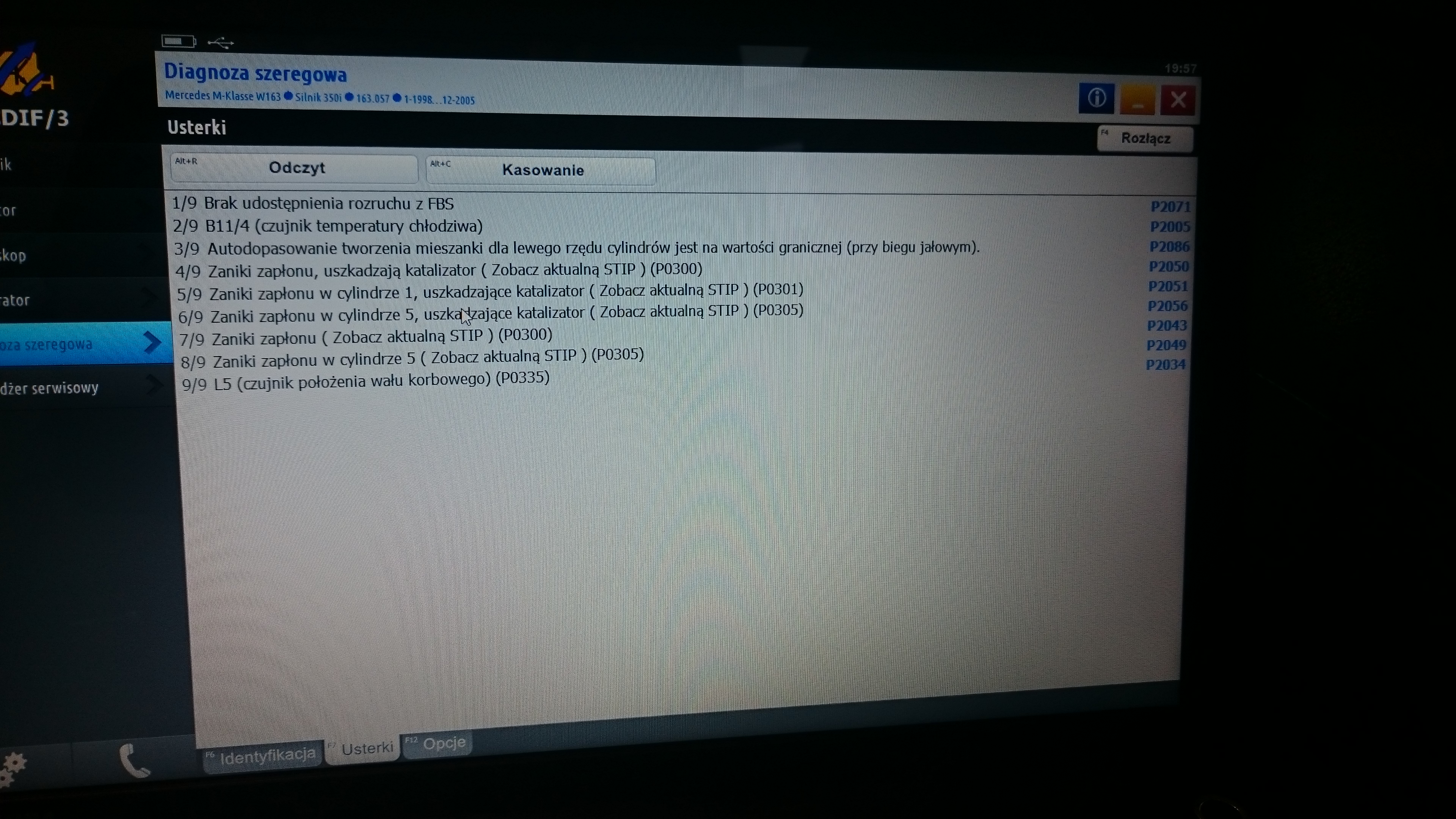 Auto nie chciało zapalić po wielu próbach zapaliło, wywaliło trochę błędów: p2071,p2005,p2086,p2050,p2051,p2056,p2043,p2049,p2034.