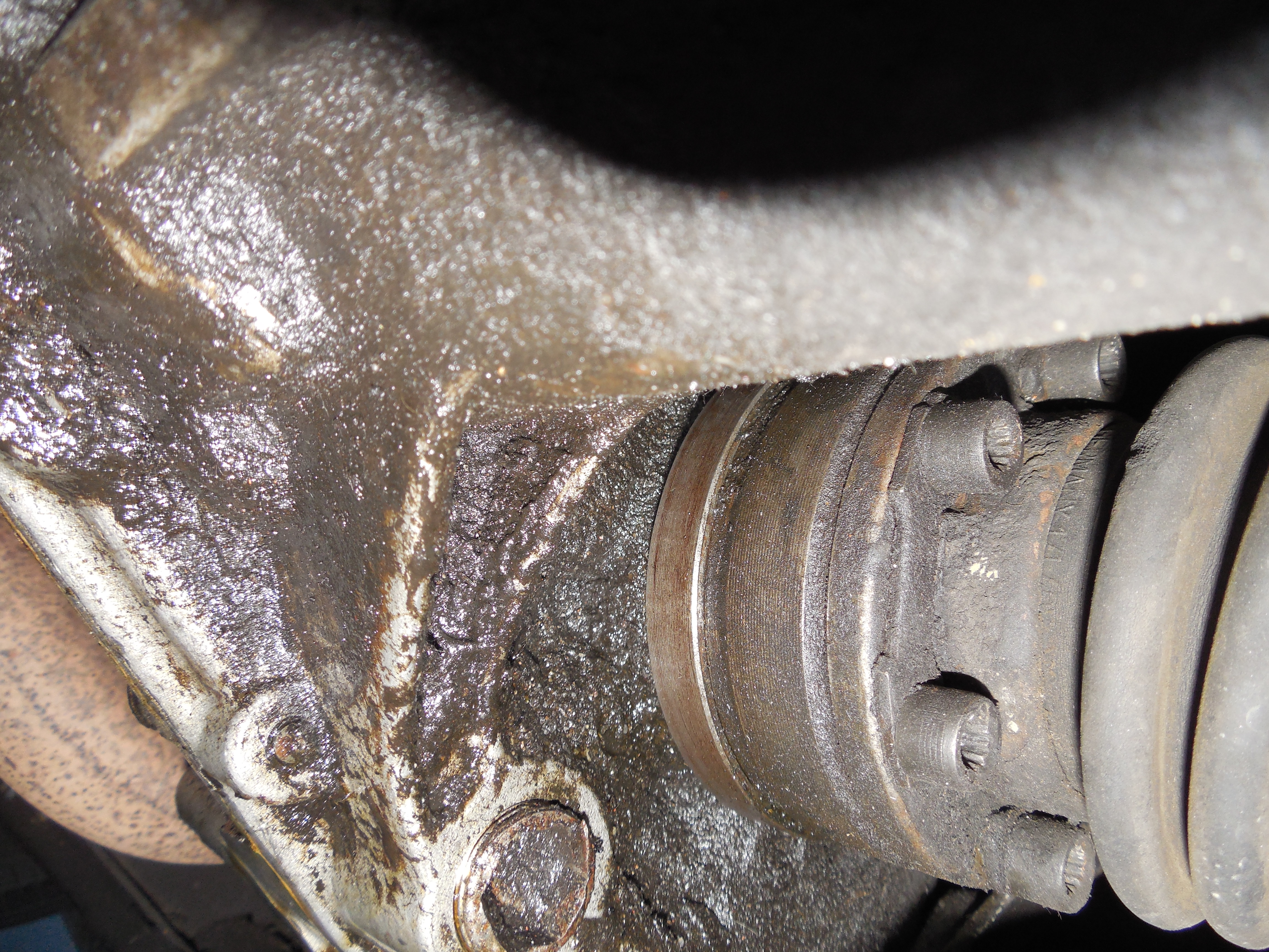 Wczołgałem się pod auto i z tego co widzę, to cieknie z półosi.