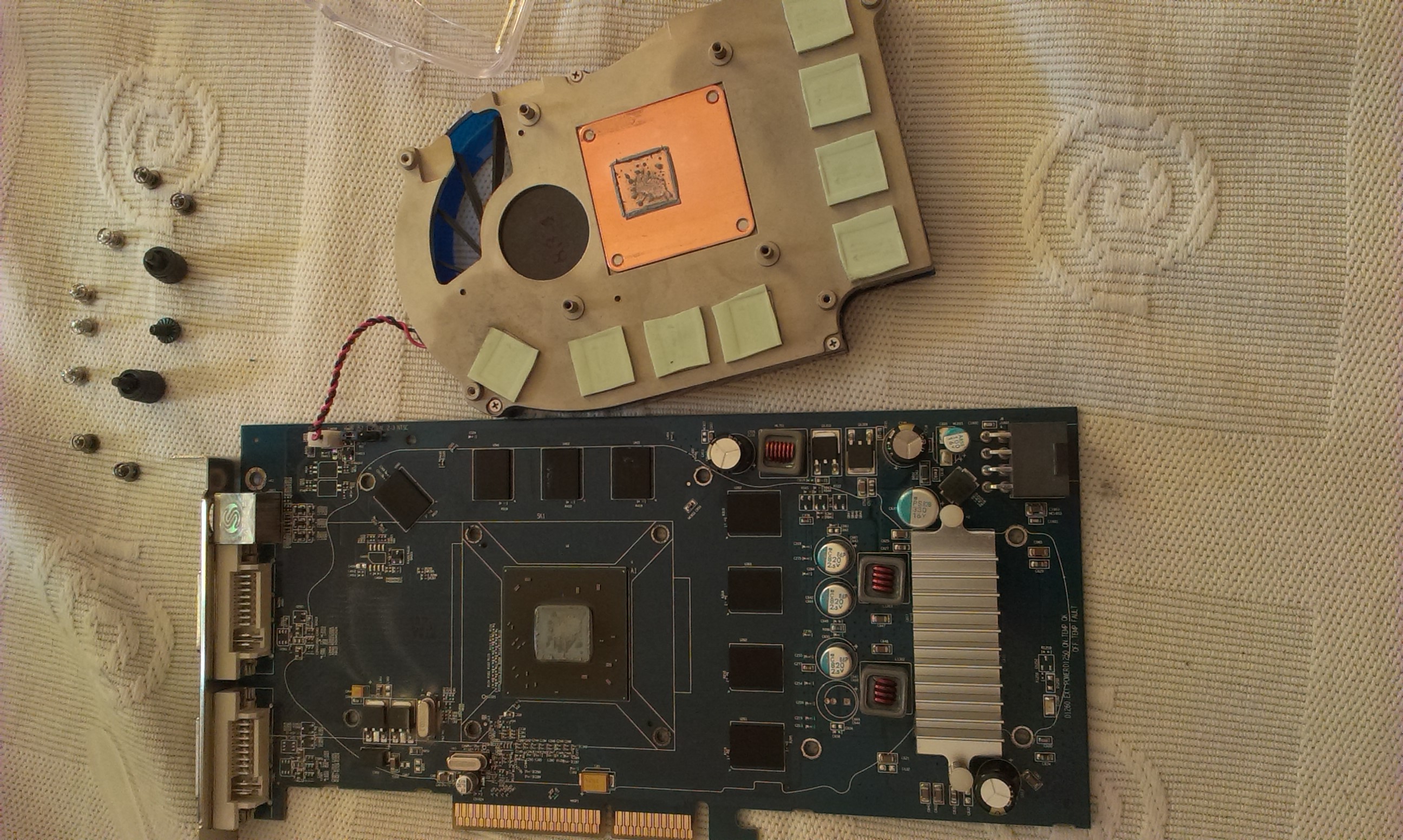 Załączam zdjęcie rozkręconego chłodzenia karty. Może ktoś będzie miał jakieś uwagi.