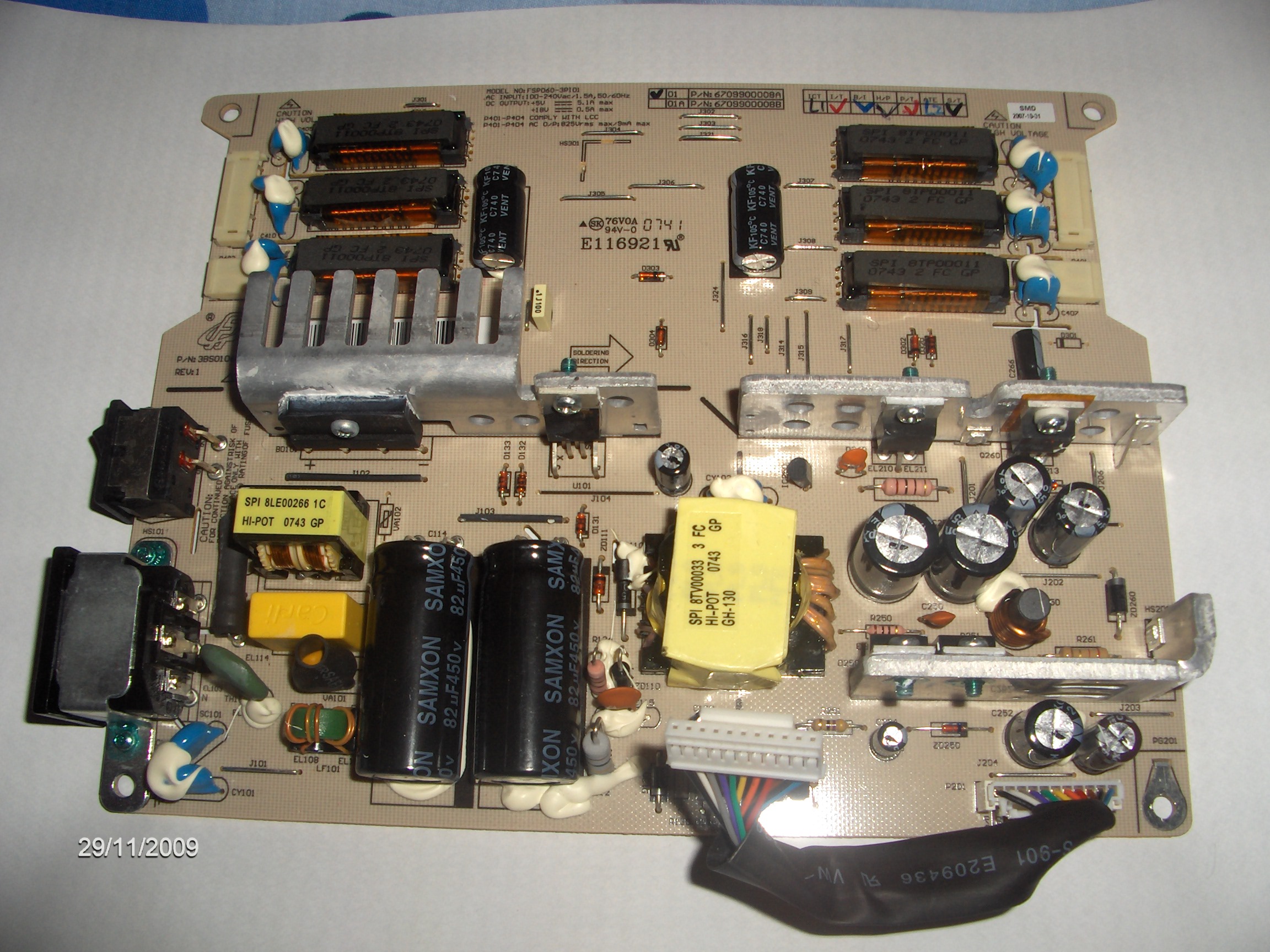Spuchnięty kondensator elektrolityczny został wymieniony na sprawny. Mimo to nie działa poprawnie.