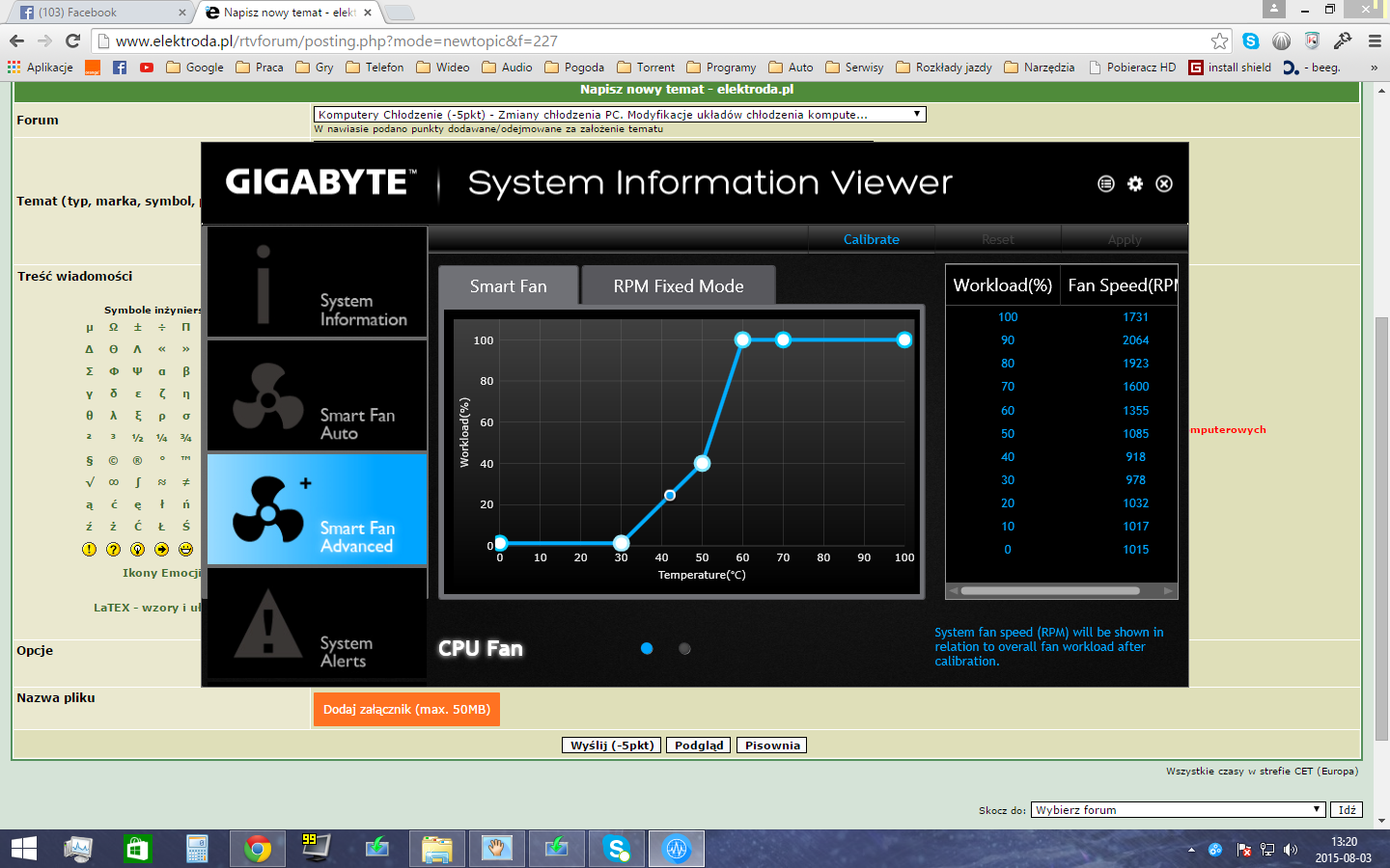 Tu z kolei za pierwszym razem wciskasz "Calibrate" aby ustalić zakres prędkości obrotowej dla wentylatora, następnie ustawiasz obroty na wykresie i jeśli chcesz żeby to ustawienie zaczęło działać to wciskasz "Apply"