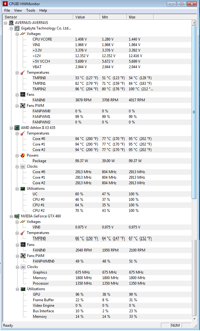 Dodaje 2 screeny ze Speedfan'a - w czasie pracy w windowsie (kilka kart, muzyka) i w czasie gry (rowniez z muzyka i ze stronami)
