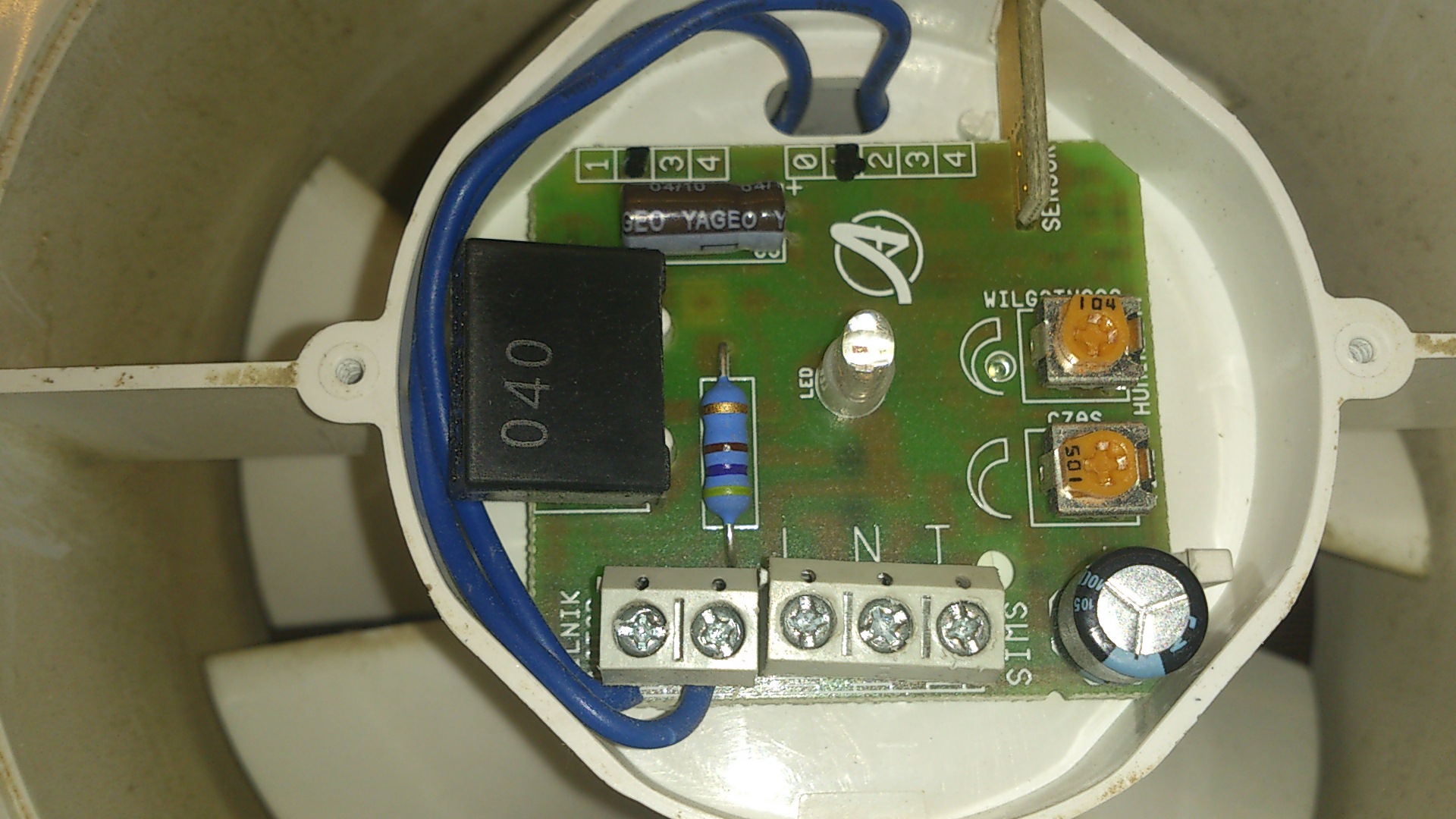 Bardzo proszę o podpowiedź jak to podłączyć i który potencjometr jest od czasu i od wilgoci.
