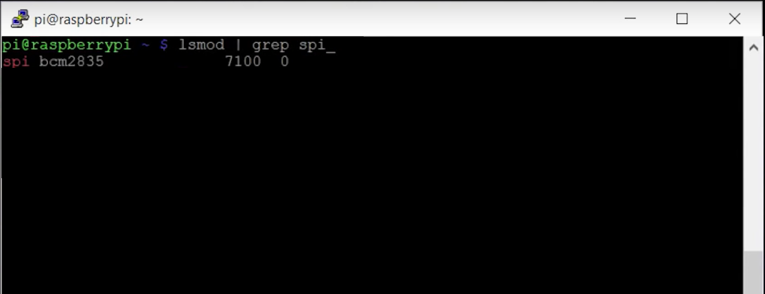 lsmod | grep spi_Jeśli wszystko jest w porządku konsola zwróci nam: