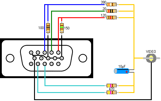 Znalazłem coś takiego w internecie. Polutowałem wszystko tak jak jest na rysunku, tylko bez lutowania brązowego i brązowo-białego które i tak się nie podpina do niczego ani się ich nie łączy. Ale coś nie działa. Testuje to z PS2 które na YPbPr działa, sprawdziłem na telewizorze. Polutowane też dobrze sprawdziłem miernikiem ciągłość obwodu.