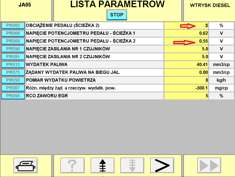 A jest wartość "obciążenie pedału" i wtedy kiedy traci moc to ta wartość spada na 0% reszta jest ok.