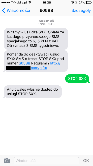 przeglądając strony WWW przez SAFARI w trybie PRYWATNYM w iPhone 6 z aktualnym iOS 9.0.2 zdalny serwer UZYSKAŁ NUMER MOJEGO TELEFONU i uruchomił na moim numerze usługę płatnych SMS, o czym dowiedziałam się otrzymując powiadomienie o uruchomieniu subskrypcji z numeru (60588):