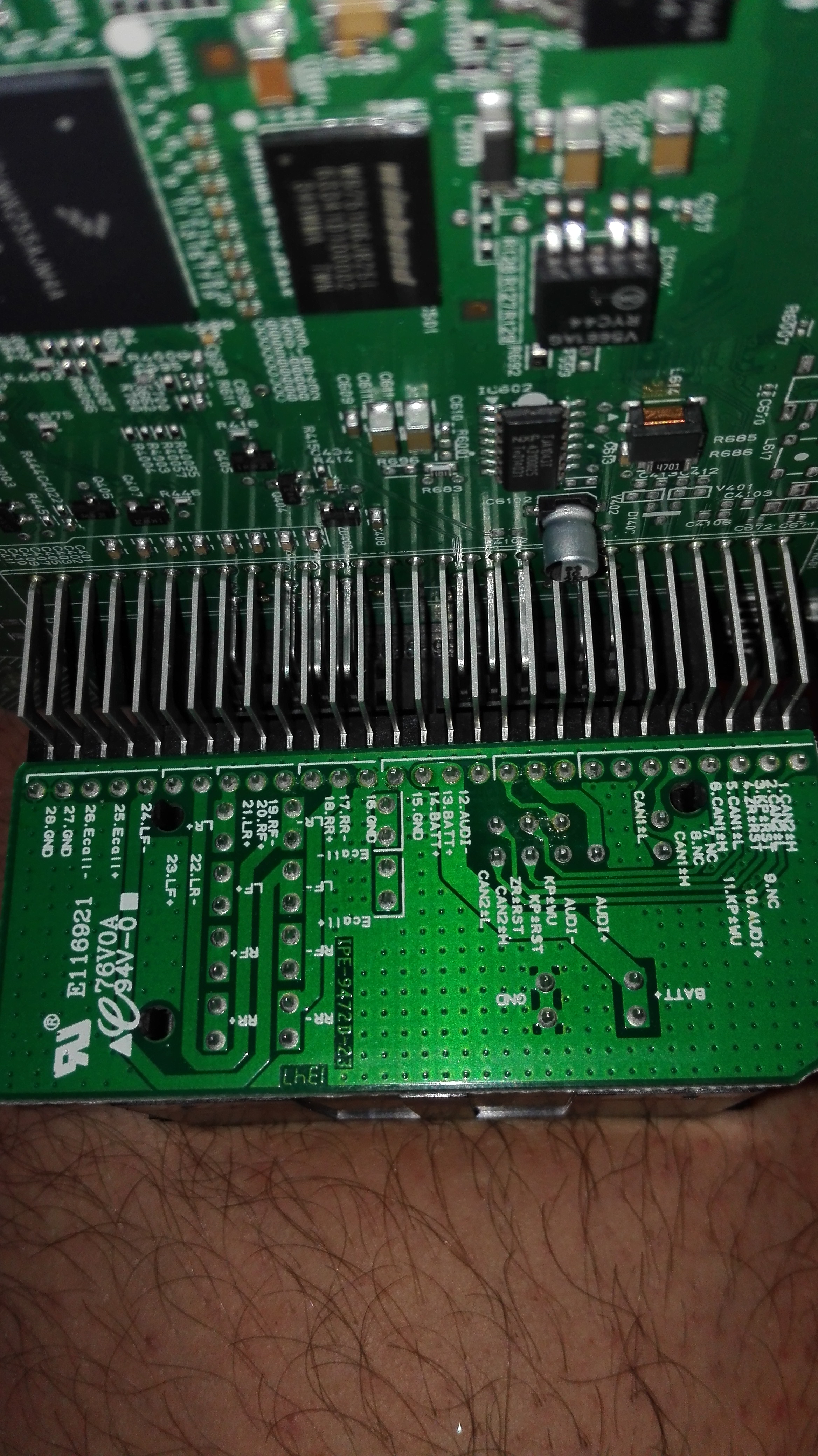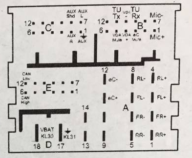do golfa 4 oczywiście jest inna kostka ale z tym se poradziłem znalazłem prądy i wyjścia na głośniki radio sie uruchamia ale w stopniu ograniczonym wyswietla się włącz zapłon z tego co się dowiedziałem to trzeba podłączyć sygnał z komputera samochodu ale który to pin nie mam pojęcia może ktoś pomoże pomocy dołaczam jeszcze parę fotek kostki z przodu i z tył