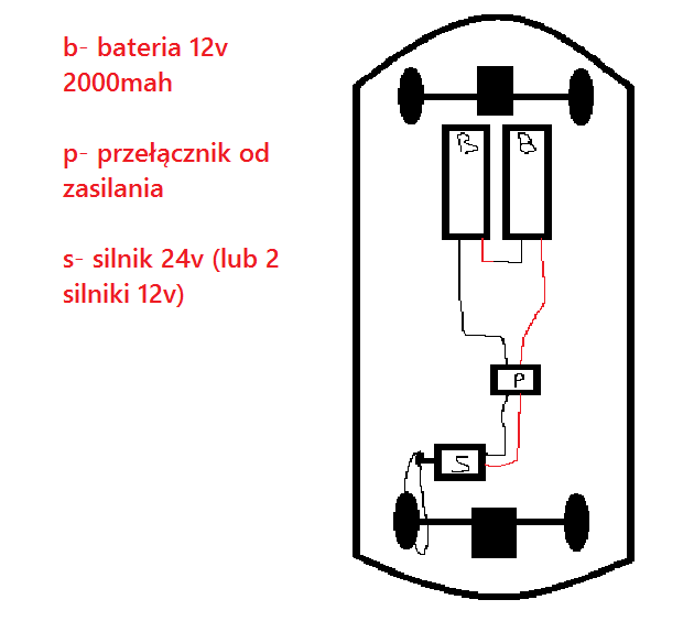 Teraz proszę o pomoc w wyborze baterii, silnika i poprawienia schematu jeśli zrobiłem błąd (a to bardzo możliwe)