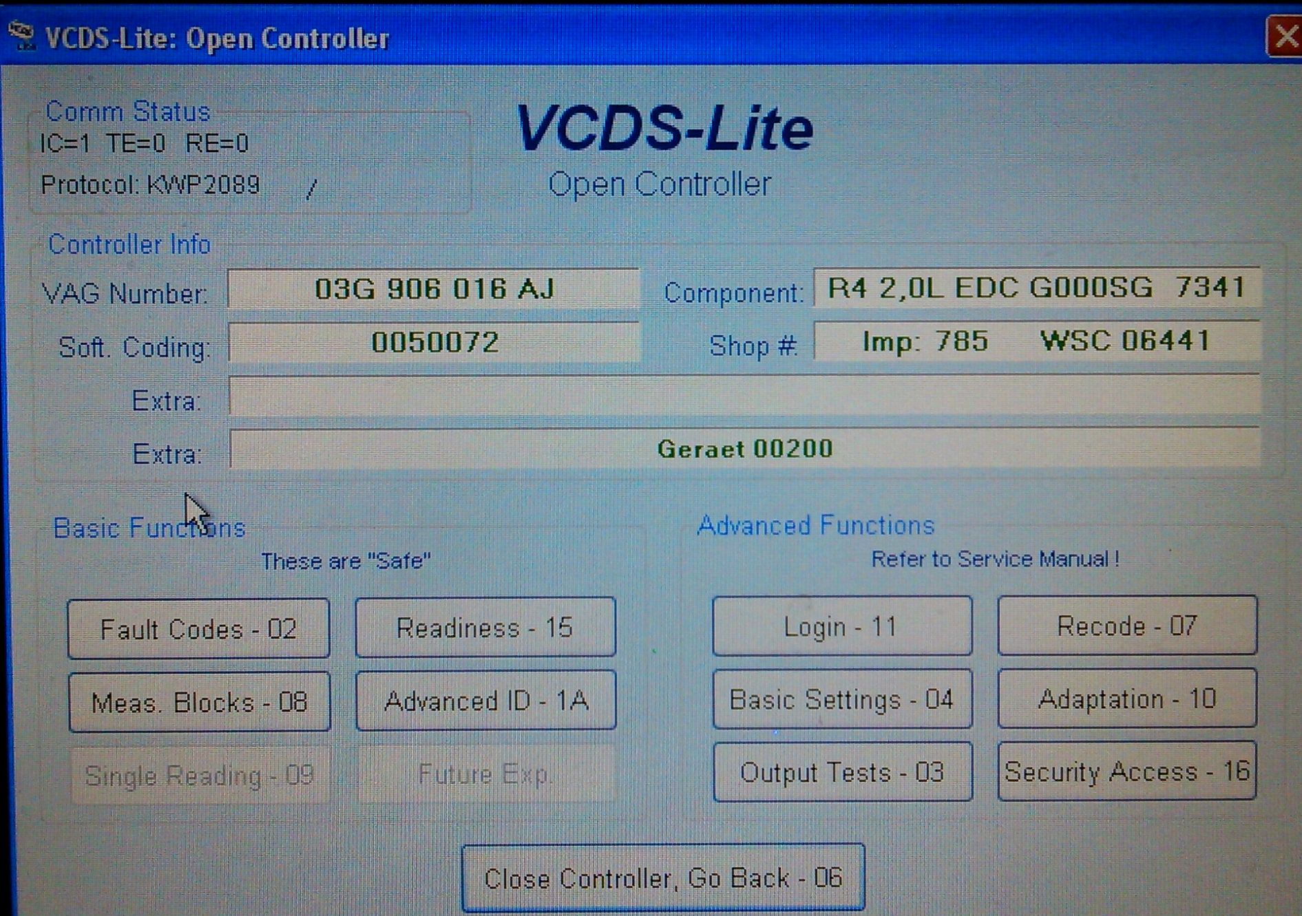 Do komunikacji używał programu VAG K+CAN COMMANDER FULL 1.4 (CHINA)