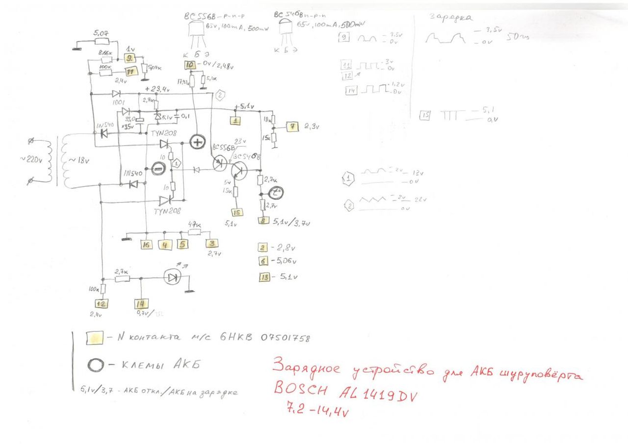 Witam! Potrzebuję pomocy odnośnie naprawy ładowarki do akumulatorów Bosch AL 2425 DV. Mam uszkodzenie po pierwotnej stronie przetwornicy a mianowicie diody v1,v2,v3,v4,v15, tranzystor v5,i układ N1.Konkretnie chodzi mi jaka to jest dioda z oznaczeniem na płytce V15? Rozpadła się na kawałki i nie mogę nigdzie namierzyć jaka to jest? Z góry dziękuję za pomoc.