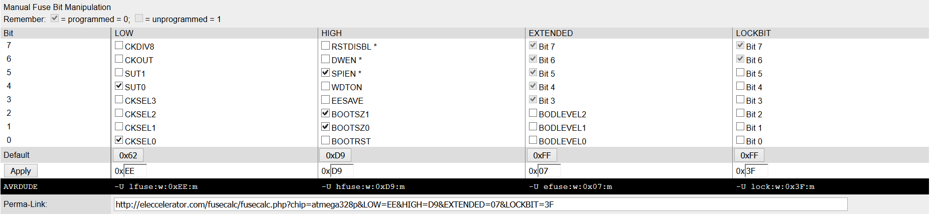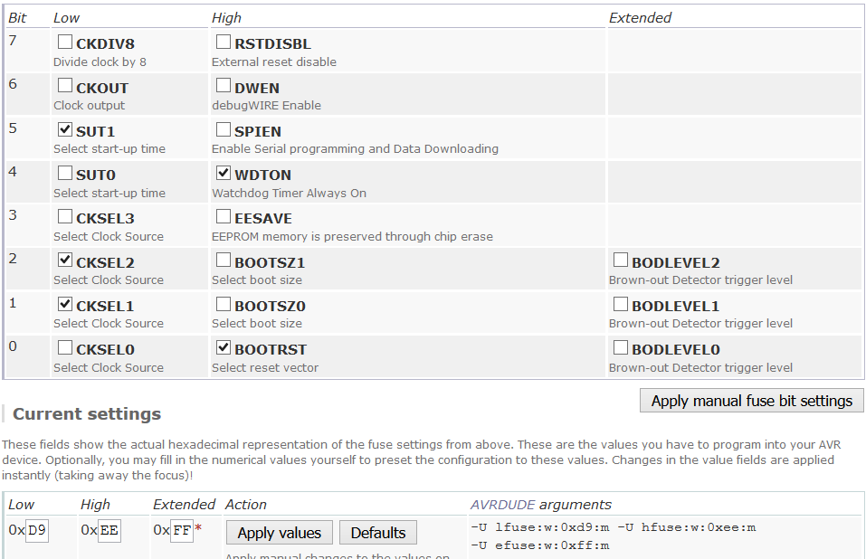 avrdude.exe: 1 bytes of efuse written