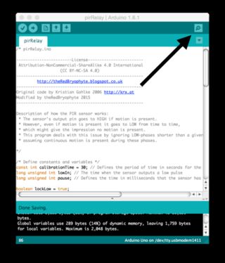Czujnik PIR podłączamy do modułu Arduino tak, jak pokazano to na diagramie powyżej, wykorzystujemy do tego tylko jeden przewód (plus dwa dodatkowe dla masy i zasilania dla czujki). Na tym etapie do Arduino załadować możemy program zamieszczony poniżej.