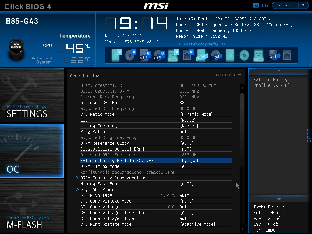 Przy ustawieniach jak screenshotach komputer działa stabilnie.