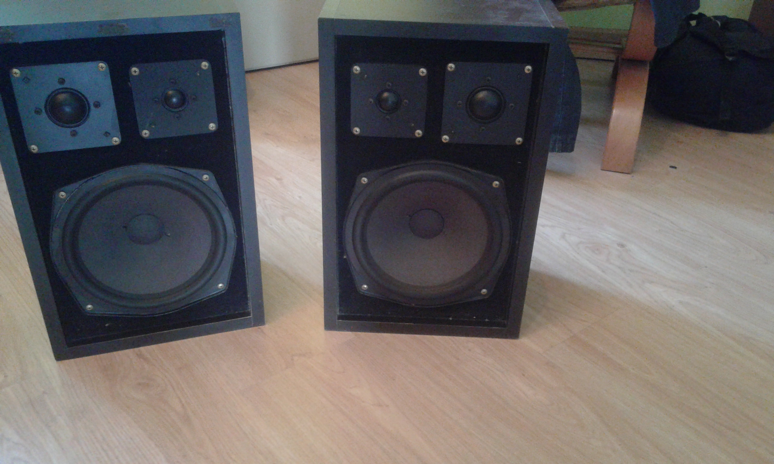 Witam zakupilem dzis na giełdzie kolumienki widoczne na zdj, fajnie dosc wykonane, Super grajace co mnie bardzo cieszy:) , lecz mam dylemat nie ma na nich zadnej tabliczki z modelem/marka, Poznaje ktos co to za Kolumienki? jedynie z tyłu znaczek widoczny na zdj, oraz nie widoczne na zdj złote maskownice