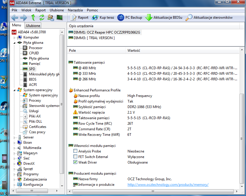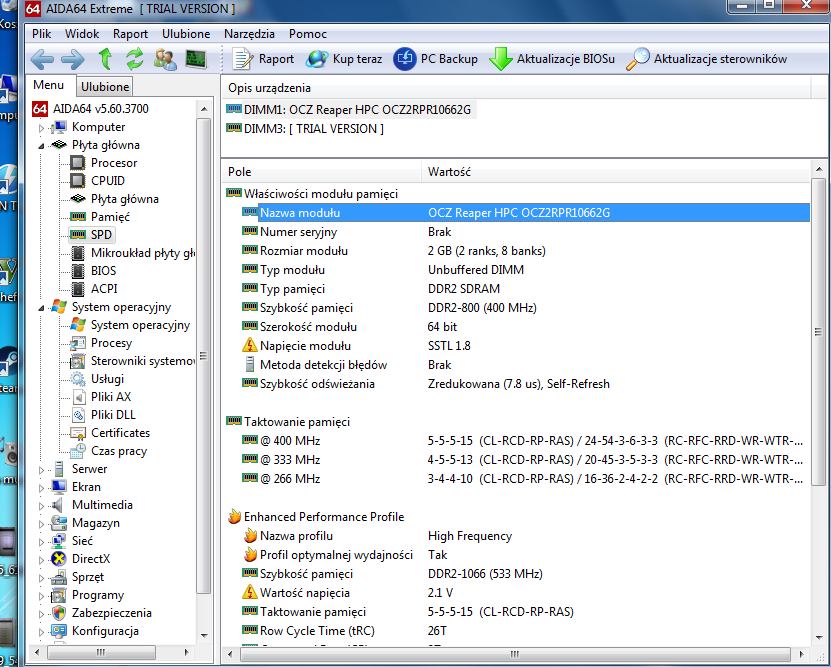 Pamięć ram DDR2 OCZ 2x2GB 1066MHz