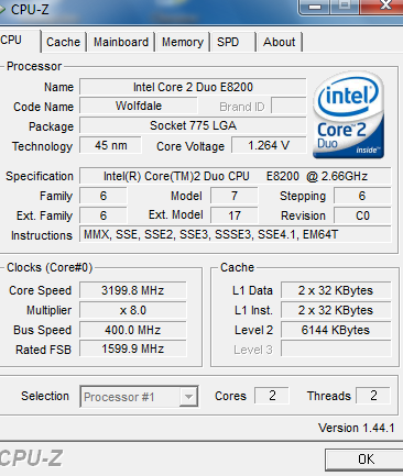 Podkręcilem porocesor E8200 z 2.66GHz do 3.00GHz i temperatura CPU jest w porządku.
