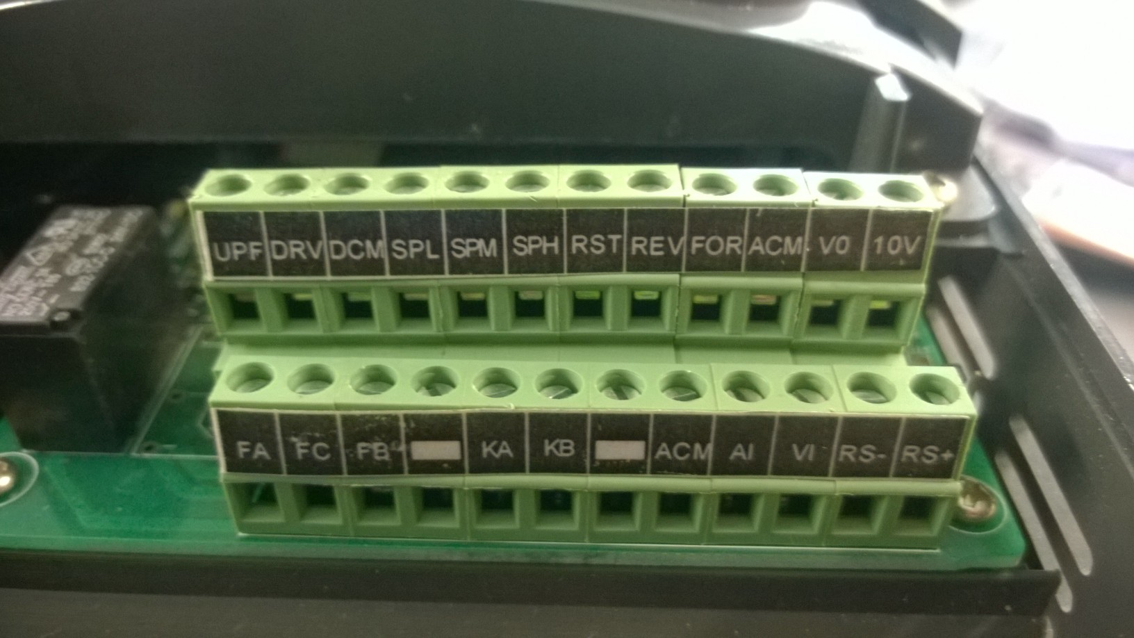 Przez chwilę myślałem że to jest GT-4R0G-2 firmy Huanyang (podobna obudowa, złącza sterowania też się zgadzają), ale nie zgadzają się kody funkcji.