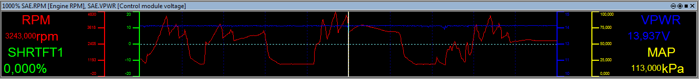 - logi z ładowania akumulatora podczas jazdy w moim samochodzie - napięcie waha się od 12,5 V do 15 V i spada do 12,5 podczas przyspieszania:
