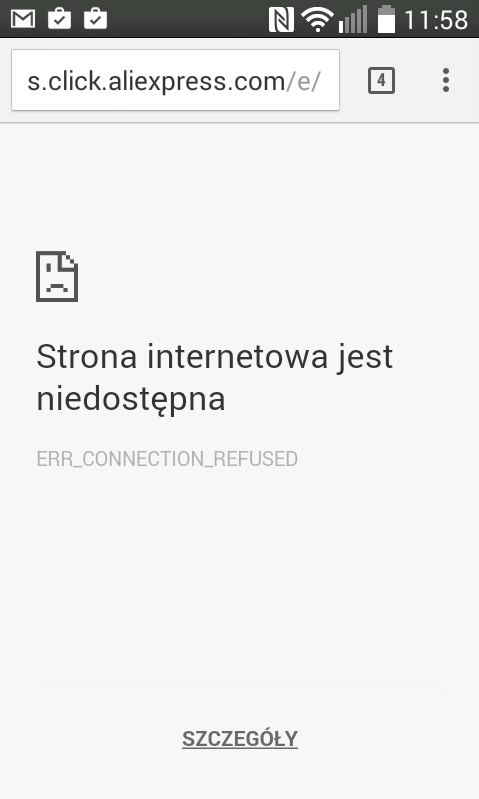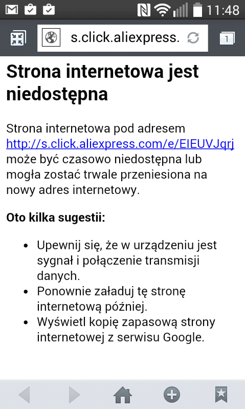Witam. Mam powyższy problem. Nie mogę wejść na skrócone linki goo.gl. Należę do zamkniętej grupy FB zw z aliexpress. Wiele członków zamieszcza skrócone linki goo.gl/xxxxx. Po kliknięciu w odnośnik czy uruchamia mi się wewnętrzna przegladarka fb czy przeglądarka zainstalowana strona sie przeładuje i wyświetla się "strona nie znaleziona" . Linki działają bo sprawdzałam je na laptopie. Nikt z grupy nie ma tego problemu. Moderator używa firefoxa na smartfonie i mu wszystko działa.