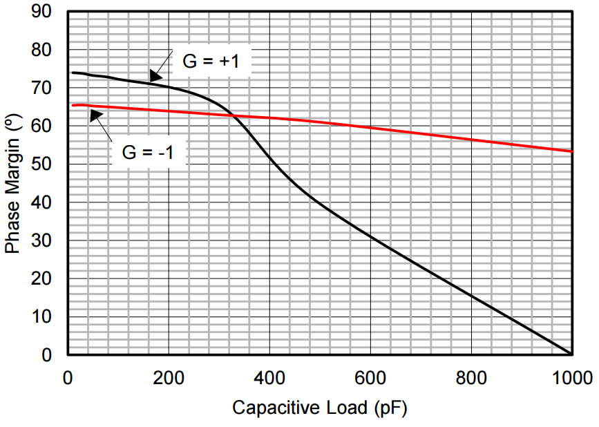 Wzmacniacze operacyjne, generalnie, nie są zaprojektowane do sterowania obciążeń pojemnościowych. Pojemność obciążenia oddziałuje wtedy z impedancją wyjściową w otwartej pętli sprzężenia zwrotnego (RO) i wprowadza do charakterystyki wzmacniacza dodatkowy biegun fpO1 na krzywej wzmocnienia w otwartej pętli sprzężenia zwrotnego w funkcji częstotliwości, jak pokazano na rysunku 3. Biegun ten powoduje nadmierne przesuwanie fazy w pętli sprzężenia zwrotnego, co przekłada się na zmniejszanie się marginesu fazy wzmacniacza. Zmniejszony margines fazy w układzie z zamkniętą pętlą sprzężenia zwrotnego może z kolei doprowadzić do pojawienia się oscylacji w układzie; w układach o jednostkowym wzmocnieniu efekt ten będzie jeszcze mocniej widoczny.