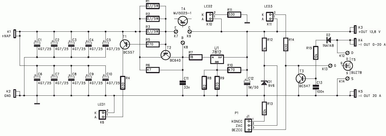 2. Współcześnie, w 21 wieku, prawie każdy spotkał się tranzystorami polowymi mocy (MOSFET - VMOS, HEXMOS i w innych technologiach wykonania struktury), więc nie ma problemu z wykonaniem na takim tranzystorze całego zasilacza, a nie tylko zabezpieczenia przeciwzwarciowego jak w zasilaczu - patrz pierwszy post. Prąd na poziomie 35A jest łatwy do realizacji na pojedynczym tranzystorze mocy!!!