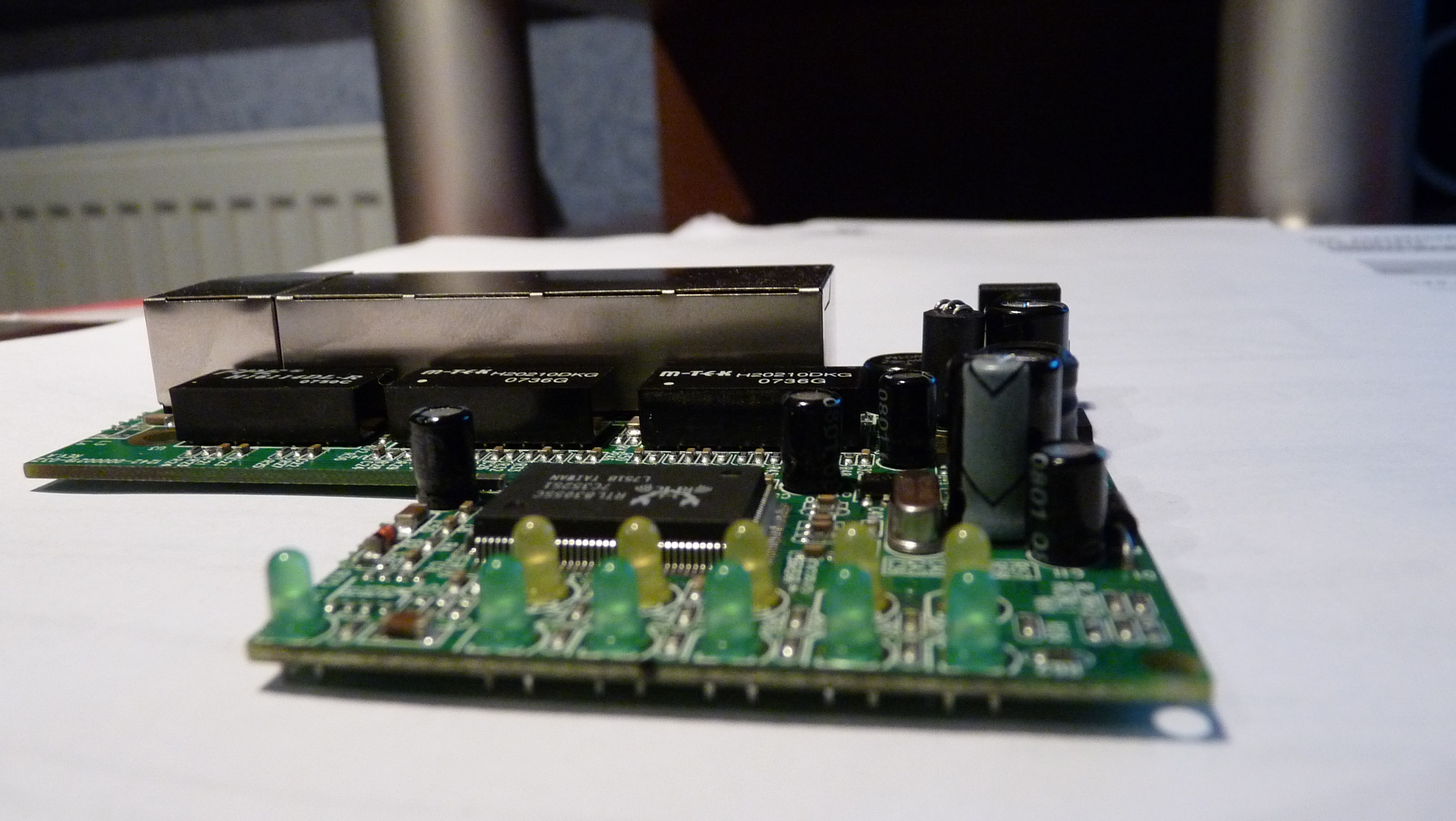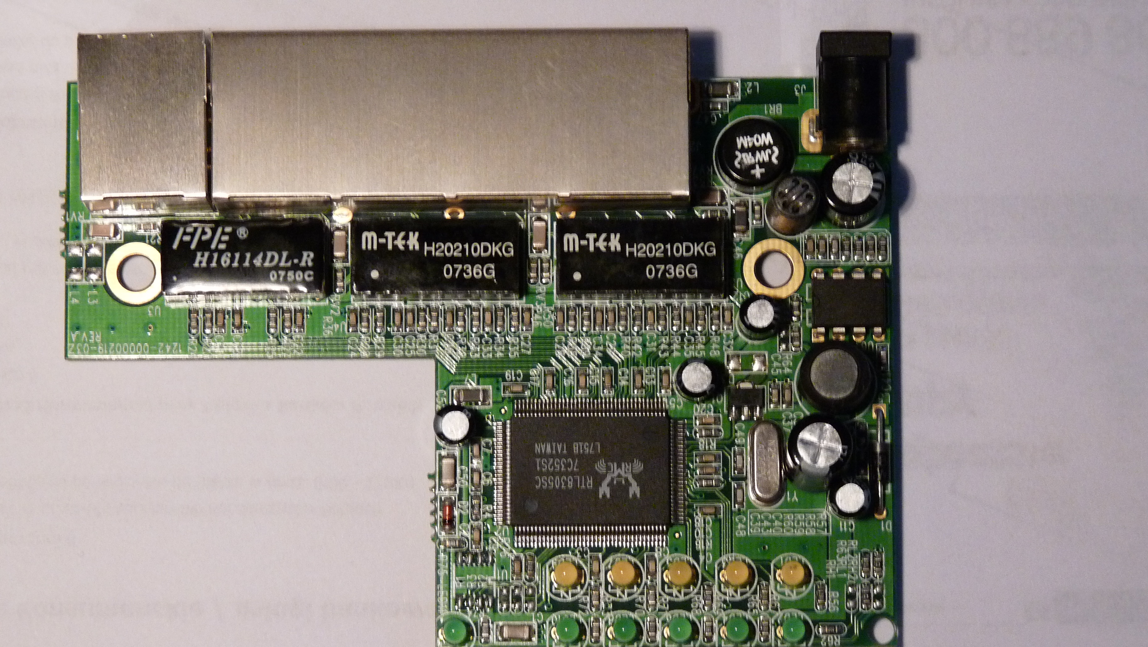 Podany switch przestał działać, migały wszystkie diody nie rozdzielał sygnału Internetowego. Znalazłem spuchnięty kondensator 470 µF 16 V, który wymieniłem. Po włączeniu pali się dioda power, ale po kilkunastu sekundach zapalają się wszystkie diody i dalej nie ma rozdziału sygnału. Co mógłbym jeszcze sprawdzić - wymienić. Naprawa z gatunku hobbistycznych, niż realna potrzeba, bo takie switche nie kosztują majątku.