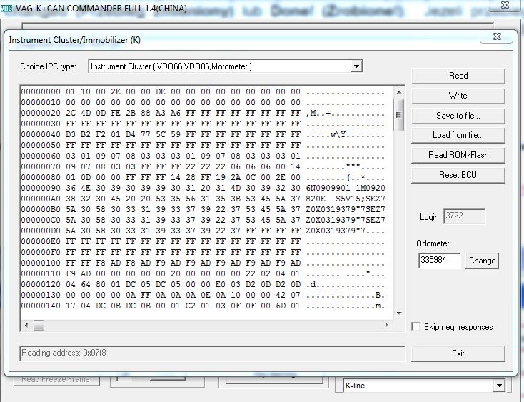 Samochód kupiłem z uszkodzonym licznikiem. Licznik kupiłem używany(dokładnie ten sam model). Wszystko w nim działa prawidłowo oprócz wyświetlanego przebiegu. Chciałbym przebieg ustanowić taki jaki był na ostatnim przeglądzie mojego auta+ to co nim już przejechałem. Kupiłem kabel VAG K+CAN 1.4 i do niego posiadam program Commander Full.