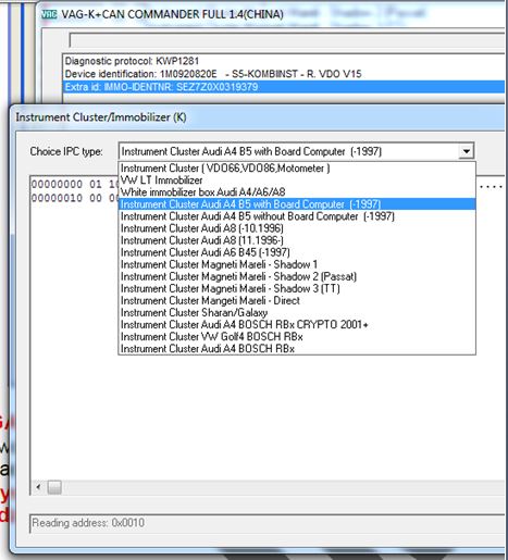 Device Indentification: 1M0920820E - S5-KOMBINST-R. VDO V15
