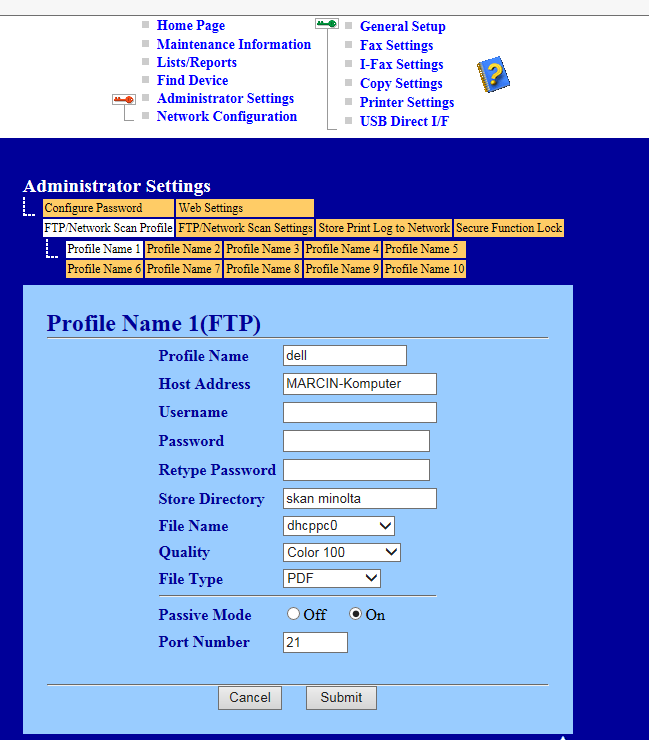 za nic nie mogę uruchomić skanowania FTP, email, network do folderu komputera.