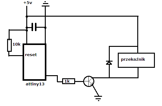 1. Dałem 6uF kondomek, także spokojnie starczy, żeby zaspokoić skokowy większy pobór przy ruszeniu (IMHO musiałby być to jakiś skok, bo na dłuższą metę przy załączonym przekaźniku napięcie byłoby cały czas niskie, tymczasem jest stabilne 5v). Trochę to jakby pomogło. Przekaźnik się załącza, przedtem w ogóle nie chciał. Jednak procek dalej wariuje