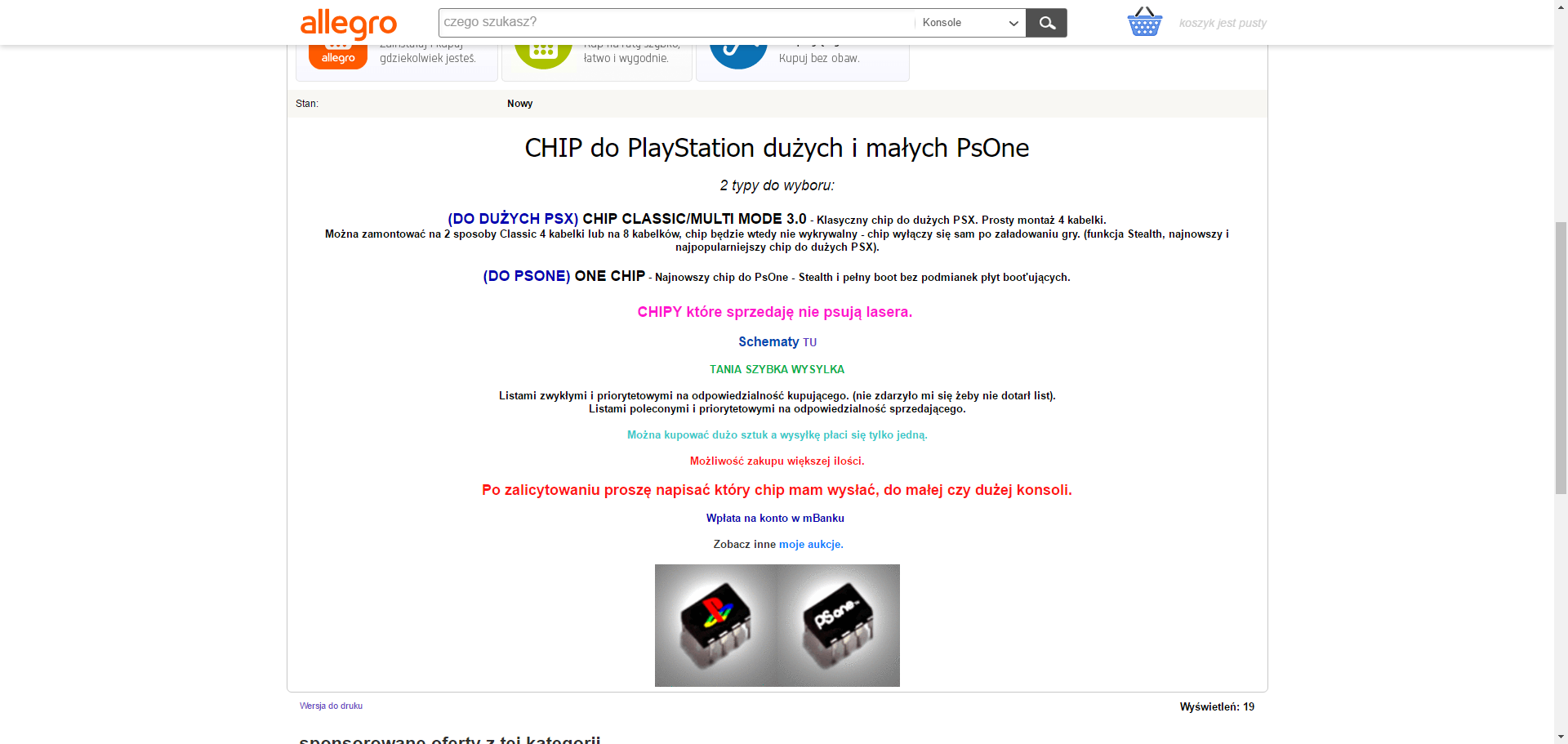 Posiadam staruteńką konsolę PSOne model SCPH-102. Przywędrowała do mnie z Angolandii. Chciałbym zastosować jej Chip-Mod, gdyż gry do tej ślicznotki kosztują majątek. Czy ktoś może podpowiedzieć mi jaki chip kupić i jak go zamontować (najlepiej z fotkami)? Wiem jak lutować itd, potrzebuję wiedzy co i gdzie przylutować.