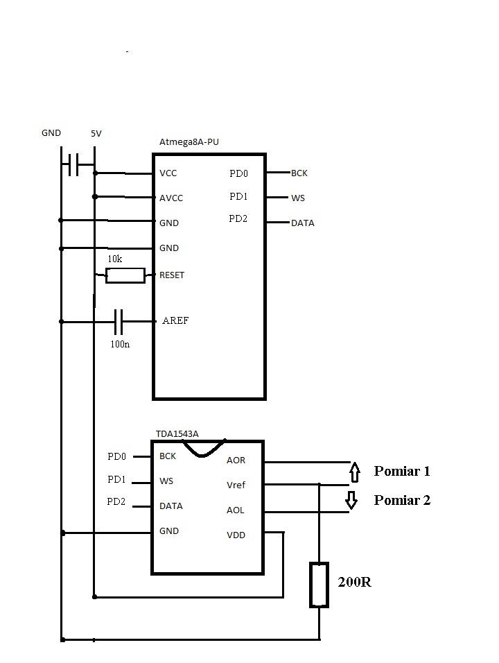 Znalazłem przykładowy program i zmontowałem układ, atmega wysyła dane lecz na wyjściach TDA mam jedynie napięcie stałe bliskie napięciu zasilania.