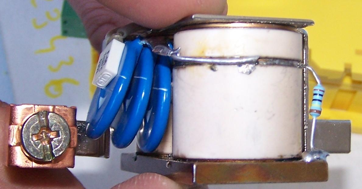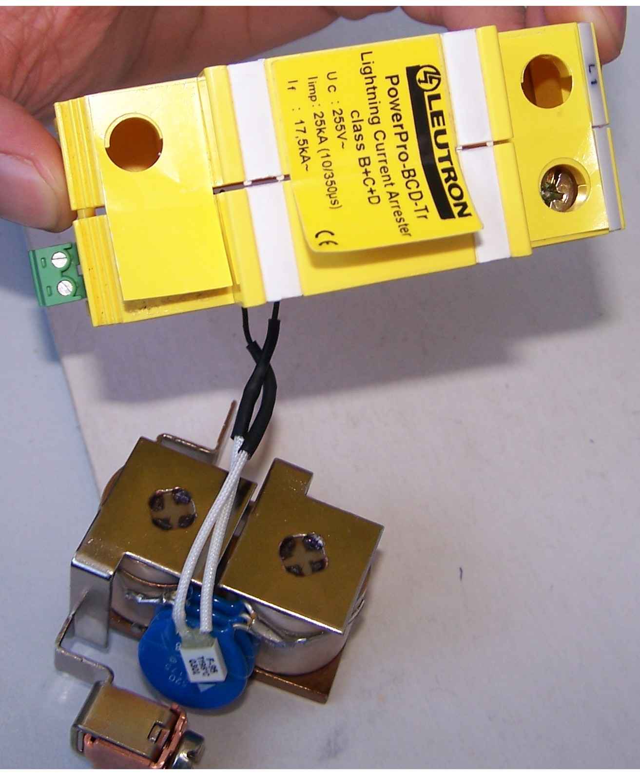 Drodzy użytkownicy forum, spotkałem się ostatnio z ogranicznikiem przepięć firmy Leutron który to skupia trzy stopnie ochrony przeciwprzepięciowej w jednym urządzeniu, interesuje mnie budowa tego urządzenia, po rozebraniu go na części stwierdzam że zawiera on trzy ogólniedostępne warystory (te niebieskie) o oznaczeniach s20k175 - z nimi nie ma problemu, znalazłem w TME, urządzenie zawiera również w sobie dwa rezystory o wartościach +/- 10Mohm i 1Mohm. Problem mam z dwoma cylindrycznymi elementami wykonanymi z białej ceramiki połączonymi szeregowo między fazę a zero, zakończonymi metalem i posiadającymi po jednym pierścieniu, nie mają żadnych oznaczeń próćz napisanych ołówkiem cyfr które w każdym modelu są inne. Podejrzewam że są to iskierniki gazoszczelne, ale czy napewno, gdzie je dostać, dlaczego warystory są przymocowane do pierścieni które podczas pomiarów multimetrem wykazują przerwę w stosunku do każdego z wyprowadzeń. Załączam fotografie.
