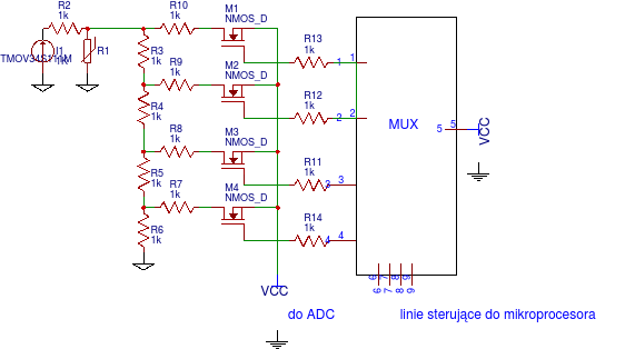 AGE ± 100pA (typ.) VDD – VEE = 18V" czyli jak rozumie przepływie prądu w stanie wyłączenia. Czy taki stan rzeczy może wpływać na dokładność pomiaru? Poza tym układ chce zrobić na dzielniku rezystorowym,z tym ze chciał bym mierzyć napięcie np sieci 230V, wiec czy taki układ wgl bedzie działał, bo podczas pomiaru dużych napięć na niektórych wejściach MUX'a bedzie się pojawiało bardzo wysokie napięcie, wtedy oczywiście te wejścia będą w stanie OFF. Jakie ewentualnie zabezpieczenia mogę tu zrobić? Czy przy pomierze dużych napięć MUX nie pójdzie z dymem?