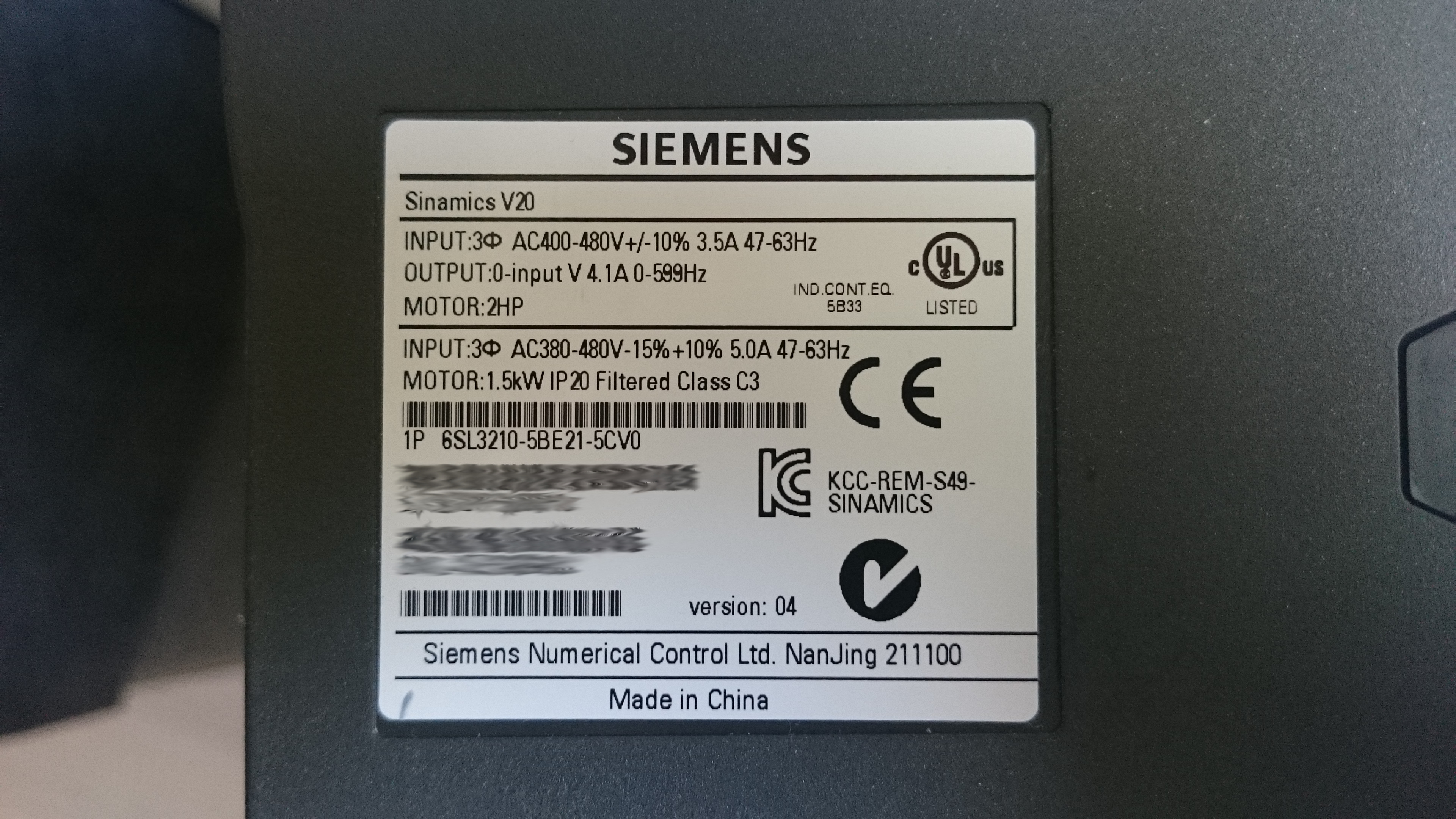 Posiadam falownik Siemens Sinamics V20 - 1p 6sl3210-5be21-5cv0