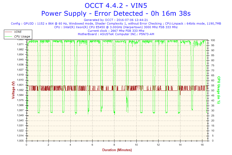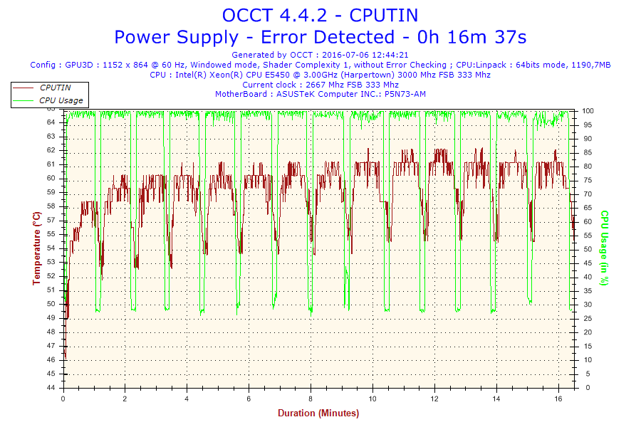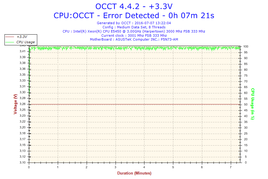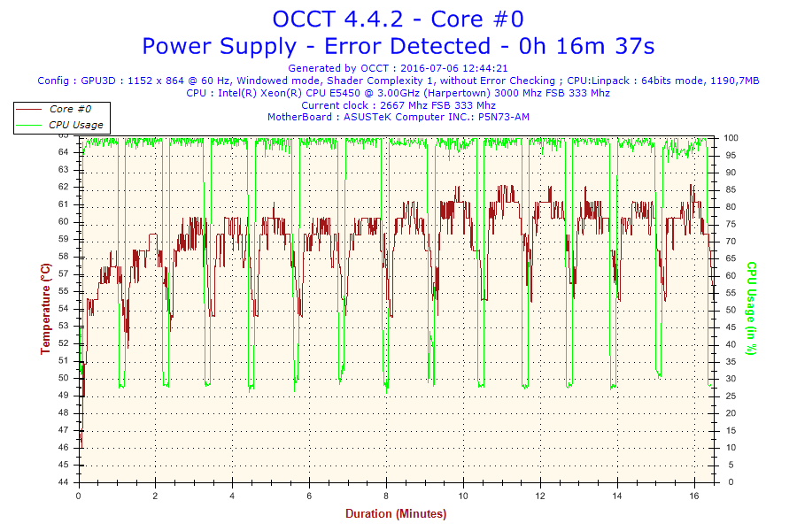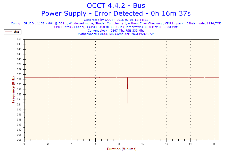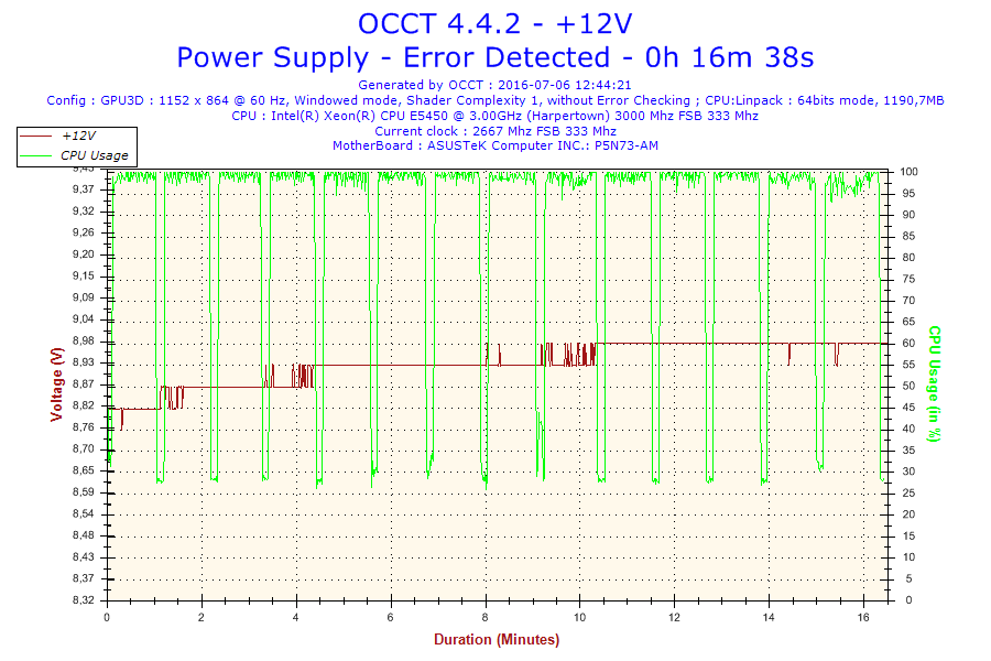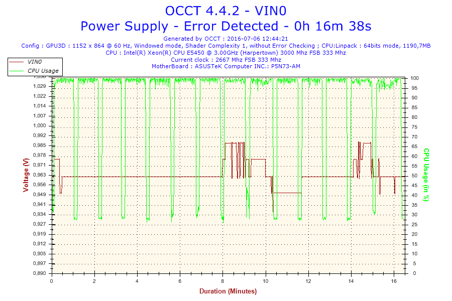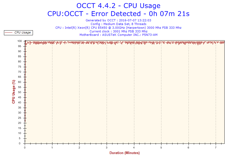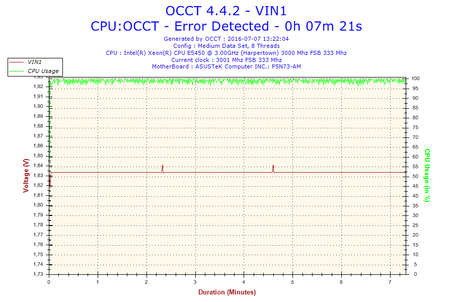 Problem jest taki że normalnie ten procesor jest taktowany na 3.0 GHz. Po ustawieniu BIOS-u na domyślne, procesor ma mnożnik 6 i FSB 333 co daje 2.0 GHz. Gdy go testowałem na mnożniku 8 po 16 minutach wywaliło mi błąd w OCCT. Screeny poniżej. (reszta w podpoście)