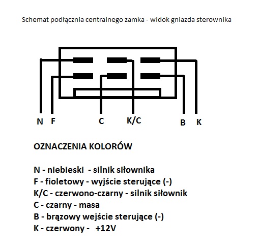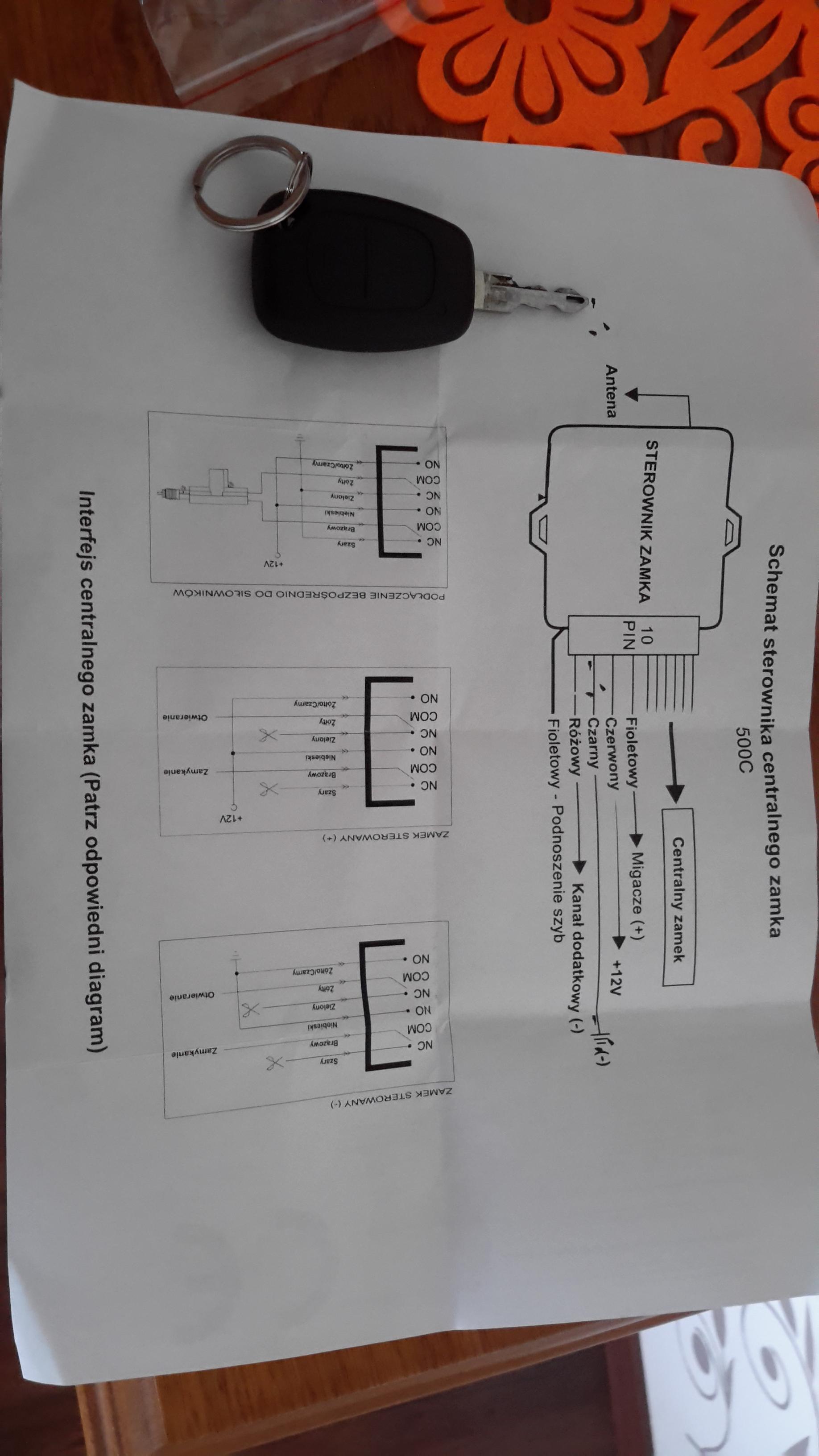 Witam serdecznie posiadam zamontowany centralny zamek Mera Blonie opel vivaro zamykany samym kluczykiem tylko ,chciałbym podmienic na idny sterownik żeby zamykał z pilota.Zakupiłem sterownik Motokey 500c/re przedstawiony na foto .Proszę o poradę jak to najlepiej podlaczyc .Foto kostki 6 pin z opisem to mera blonie.