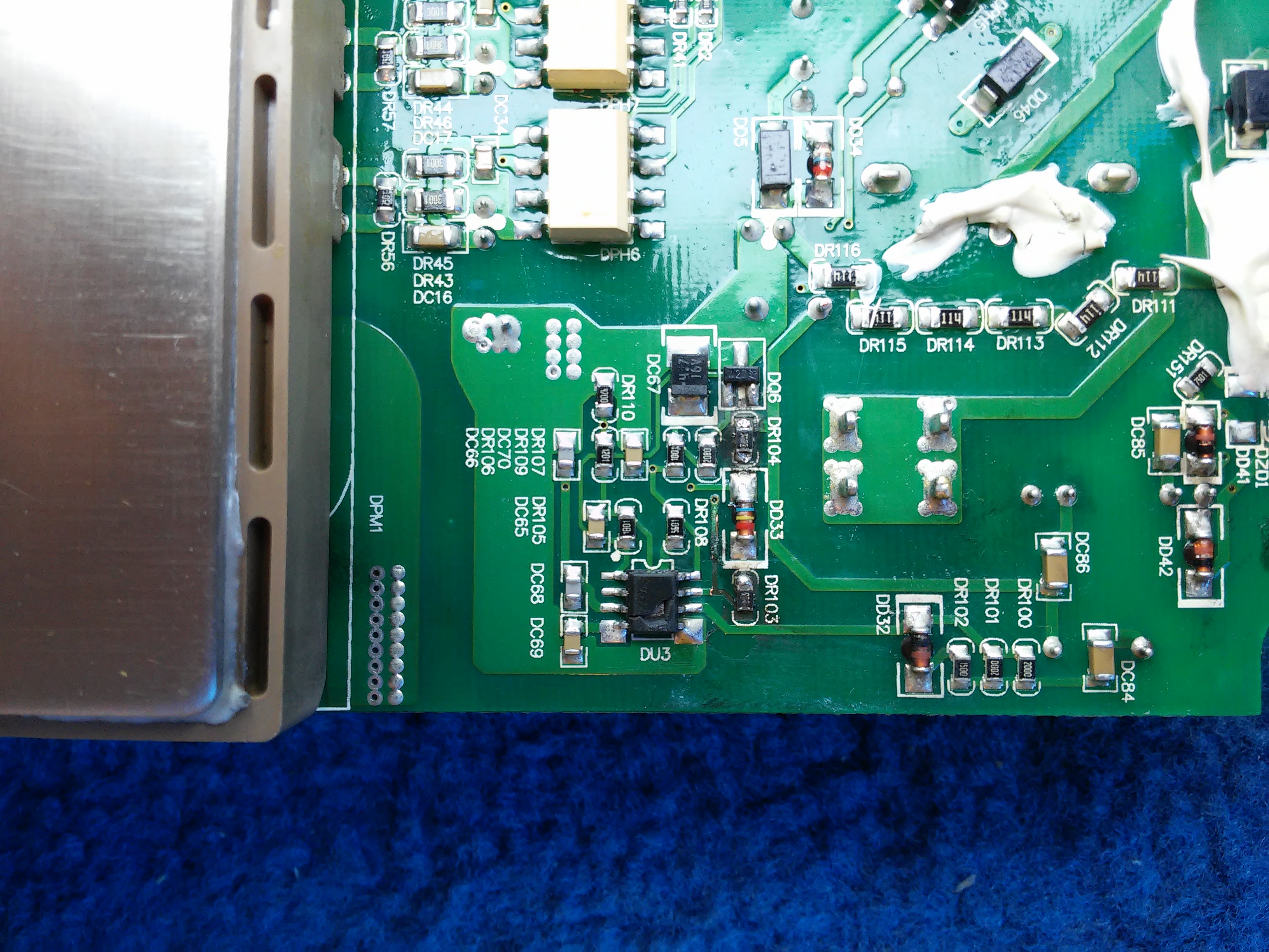 Witam, poszukuje schematu do przemiennika częstotliwości/falownika. Przyda się też szczegółowe zdjęcie okolicy DU3, DR103, DD33, DR104 lub dane tych podzespołów (widać na załączonym zdjęciu, zenerki?, też nie mogę rozszyfrować).