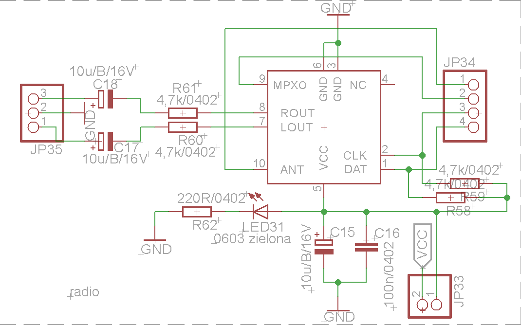 mam taki problem: chcę podłączyć wyjście radia TEA5767 na wejście wzmacniacza LM386. Niestety jednak nic nie słychać. Schematy próbowałem różne, scalaki też zmieniałem (schemat jak niżej, prosto z noty katalogowej układu):
