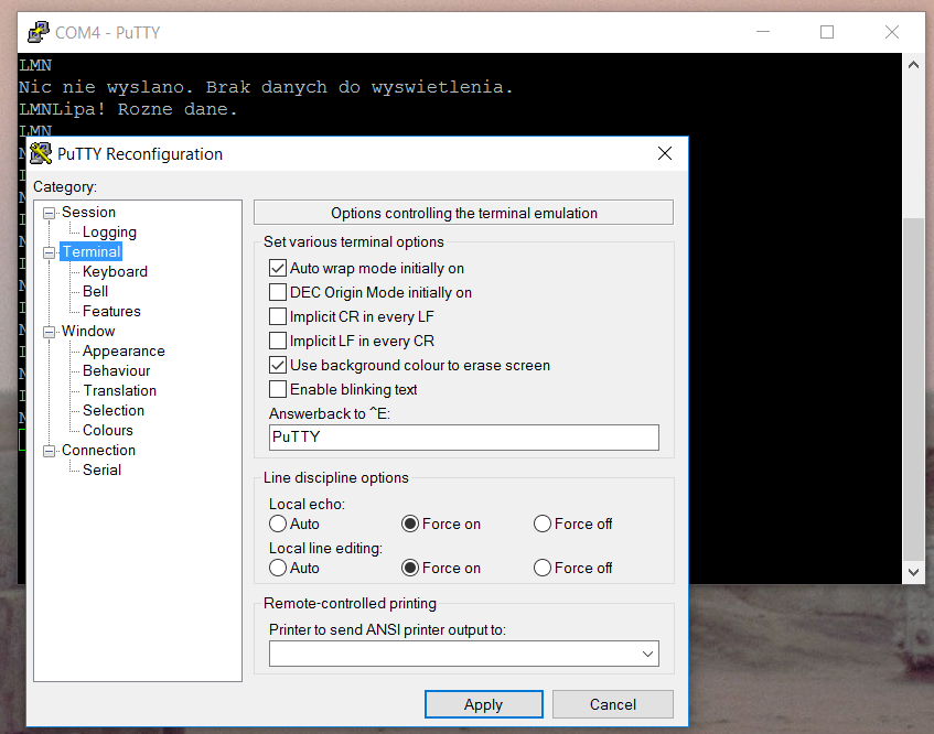 Zarówno kod do printf jak i scanf brałem z jednego źródła. Printf jak mówiłem działa, a scanf się opiera. Czym może być to spowodowane?