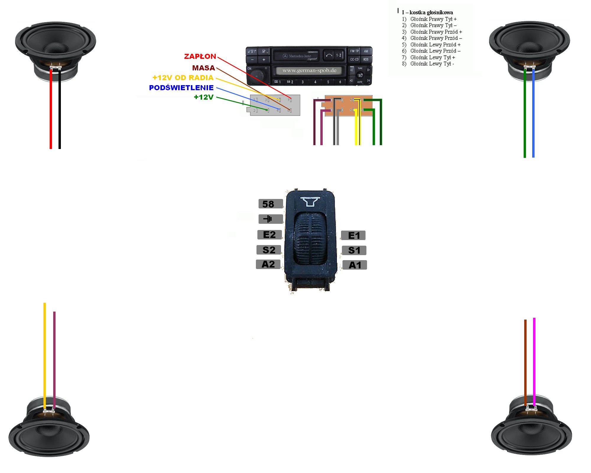 Witam sytuacja wygląda u mnie tak że podłączone mam głośniki do auta - przód i tył, wszystko gra ok, ale niestety nie działa mi przełącznik głośników w 100% - można tylko wyciszyć tylne głośniki, zostały do podłączenia 4 kable które oznaczone są na zdjęciu. W jaki sposób je podłączyć żeby można było sterować wyciszeniem przednich jak i tylnych głośników