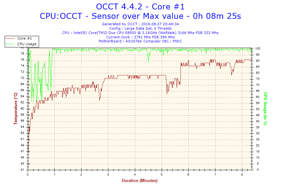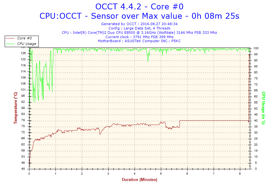 Temperatura w stresie grając w grę przez dwie godziny wynosiła jakieś 70-72°C, z obciążeniem procesora 97%.