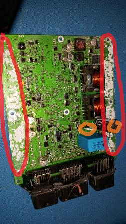 Udało się odkleić złącze (tu również pomocna okazała się łyżka do opon), pozostaje kwestia kondensatorów...